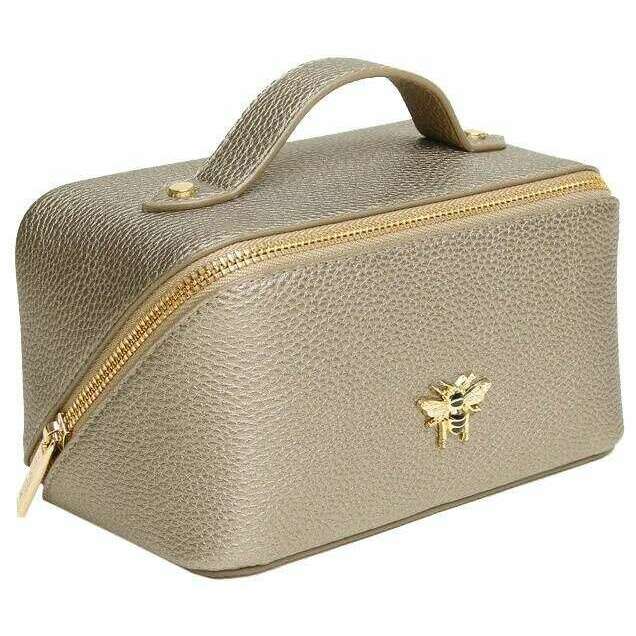 Designer Alice Wheeler London har gett dig denna kvinnors 100% vegan faux läderväska med bronstoner. Den mäter 9,5 cm (höjd) x 18 cm (bredd) x 9,5 cm (djup). Alla väskor är komplett i Alice Wheeler London -förpackning. Alice Wheeler London Mini Luxury Train Case - Bronze är en mini -version av det populära tågfodralet och är ett stilfullt söt sätt att bära dina viktiga toalettartiklar, smink eller andra resekv. Inuti är helt fodrad och innehåller interna fickor för dina mindre bitar plus som ett dubbelt huvudsektion så det är lätt att organisera dina saker. Allt är tätningar inuti säkert med sin dragkedja och är färdig med den ikoniskt vackra bi -utsmyckningen.