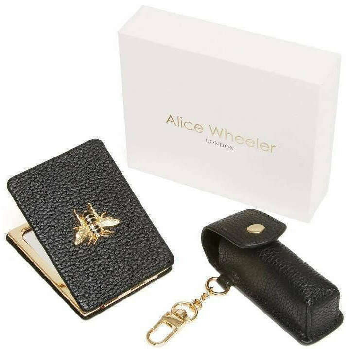 Alice Wheeler London avlång kompakt spegel och läppstifthållares presentuppsättning - svart