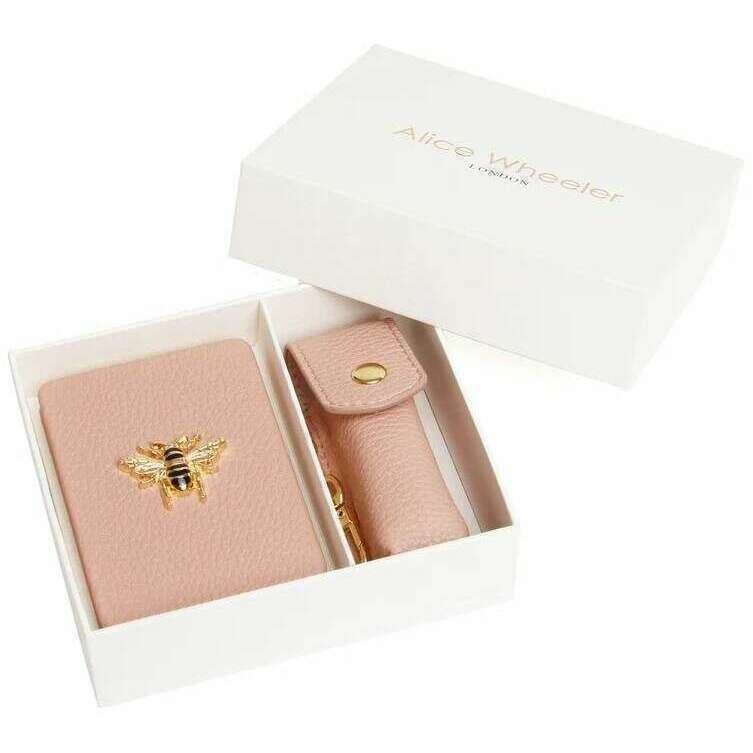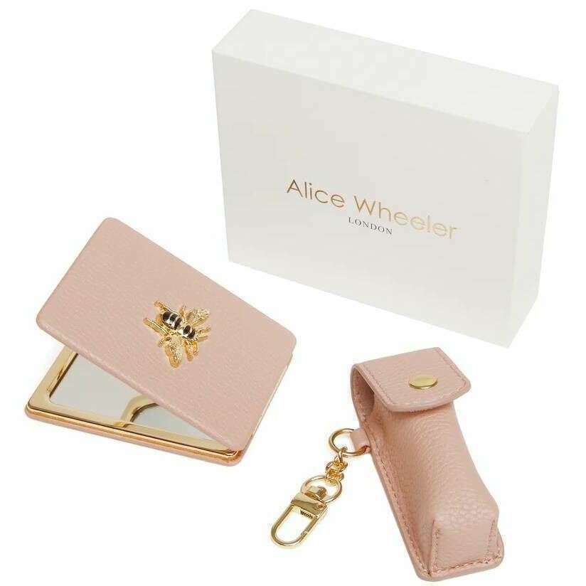 Alice Wheeler London avlång kompakt spegel och läppstifthållares presentuppsättning - rosa