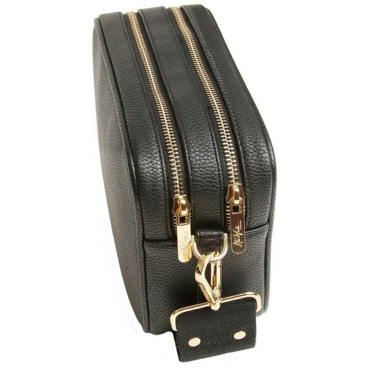 • Två huvudsakliga blixtlåsfack, inre dragkedja, två avtagbara justerbara remmar, guldmetallhårdvara