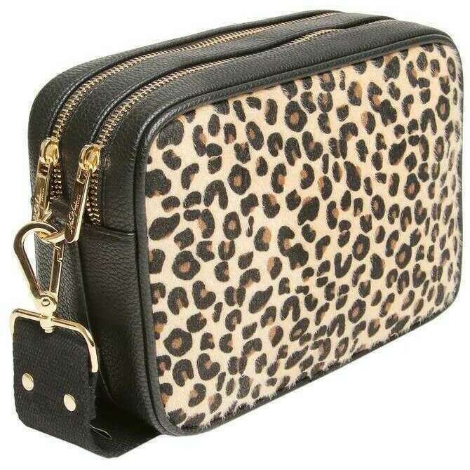 Alice Wheeler London Soho Camera Crossbody Bag - Leopard/svart