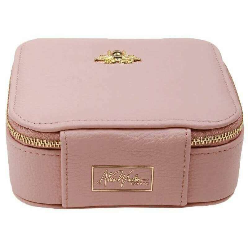 Designer Alice Wheeler London har gett dig denna kvinnors vegan faux läder och faux mocka inre smycken med rosa toner. Den mäter 13,5 cm (höjd) x 13,5 cm (bredd) x 5 cm (djup). Alla smycken lådor levereras med Alice Wheeler -förpackningar. Alice Wheeler London Travel Smyckesbox - Pink kommer att bli en favorit i hela tiden hos sin fantastiska organisation och perfekta storlek för att glida i alla väska oavsett tillfälle. Med en ringrulle bra för örhängen och dina mest slitna ringar, 3 små fack för mindre bitar, 2 större sidofack för halsband och armband och en spegel på locket. Den guldtonade blixtlåsstängningen erbjuder säkerhet och lyx. Komplett med Signature Honeybee -logotypen som är utsmyckad till toppen av detta fall.