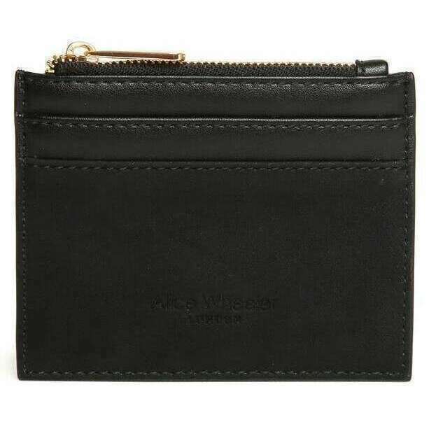 • Blixtlåsstängning, håller upp till 4 kort, guldmetallhårdvara