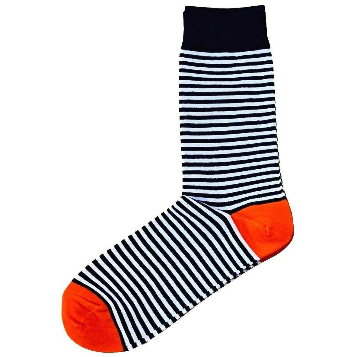 Bassin och Brown Huxley Thin Multi Stripe Strumpor - Marin/Vit/Orange