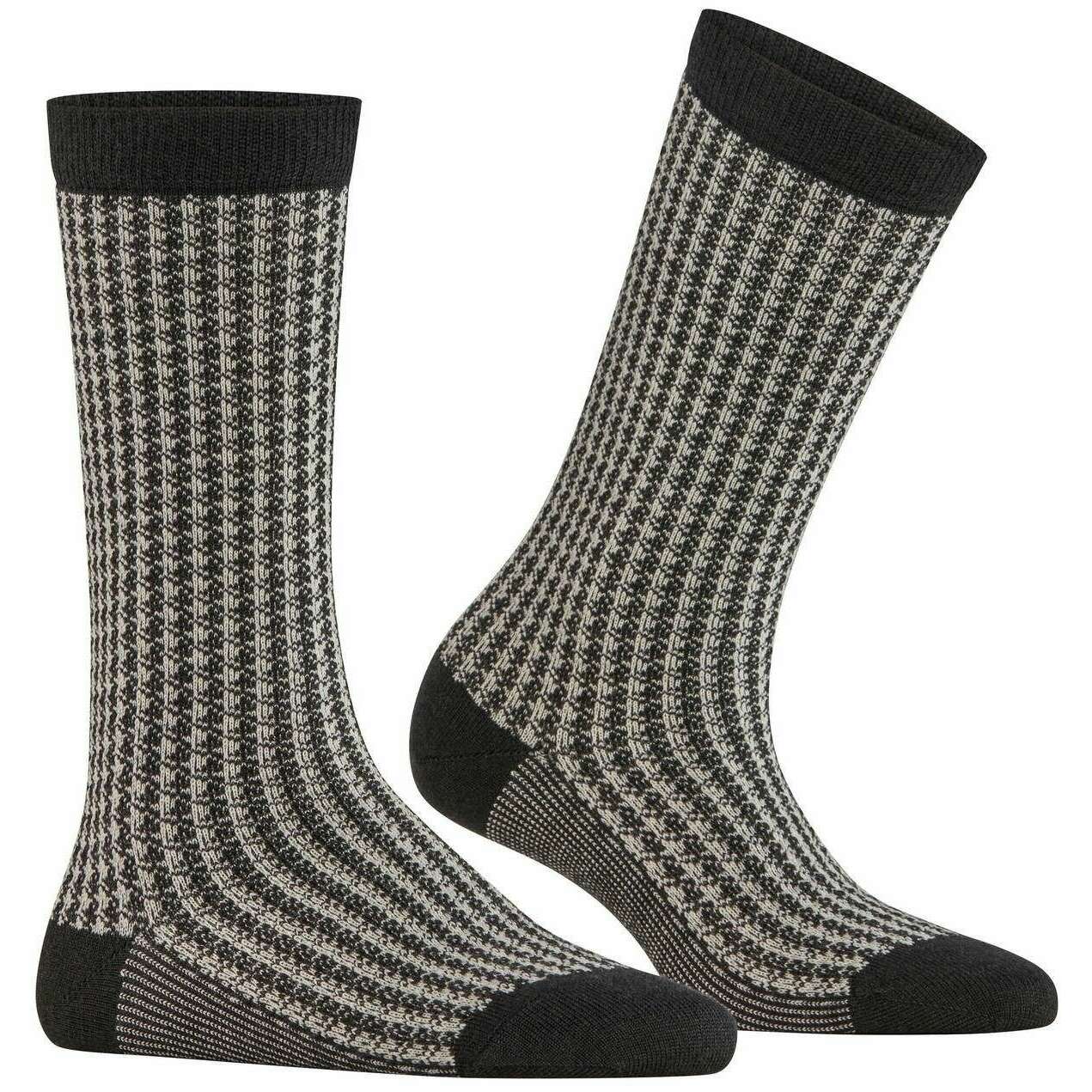 Dessa pepitastrumpor för kvinnor är gjorda av märket Burlington i en svart färg och är gjorda av 73% jungfruull, 25% polyamid (8% återvunnen) och 2% elastan. Även de svarta sockorna är designade i ett houndstooth-mönster. Det rekommenderas att tvättas i 30 grader för att hålla dessa strumpor i gott skick. Alla strumpor kommer komplett med burlington strumpor taggar. Burlington Pepita Socks - Black är ett elegant, unikt tillägg till alla garderober, designade för att lägga till en touch av känsla samtidigt som de garanterar komfort och hållbarhet. Dessa strumpor kombinerar den känsliga houndstooth-designen med den ikoniska Burlington-klämman på sidan för att förstärka vilken outfit som helst. Den värmande ullblandningen håller dessa strumpor andningsbara, medan stretchtyget säkerställer att de sitter bekvämt utan att halka.