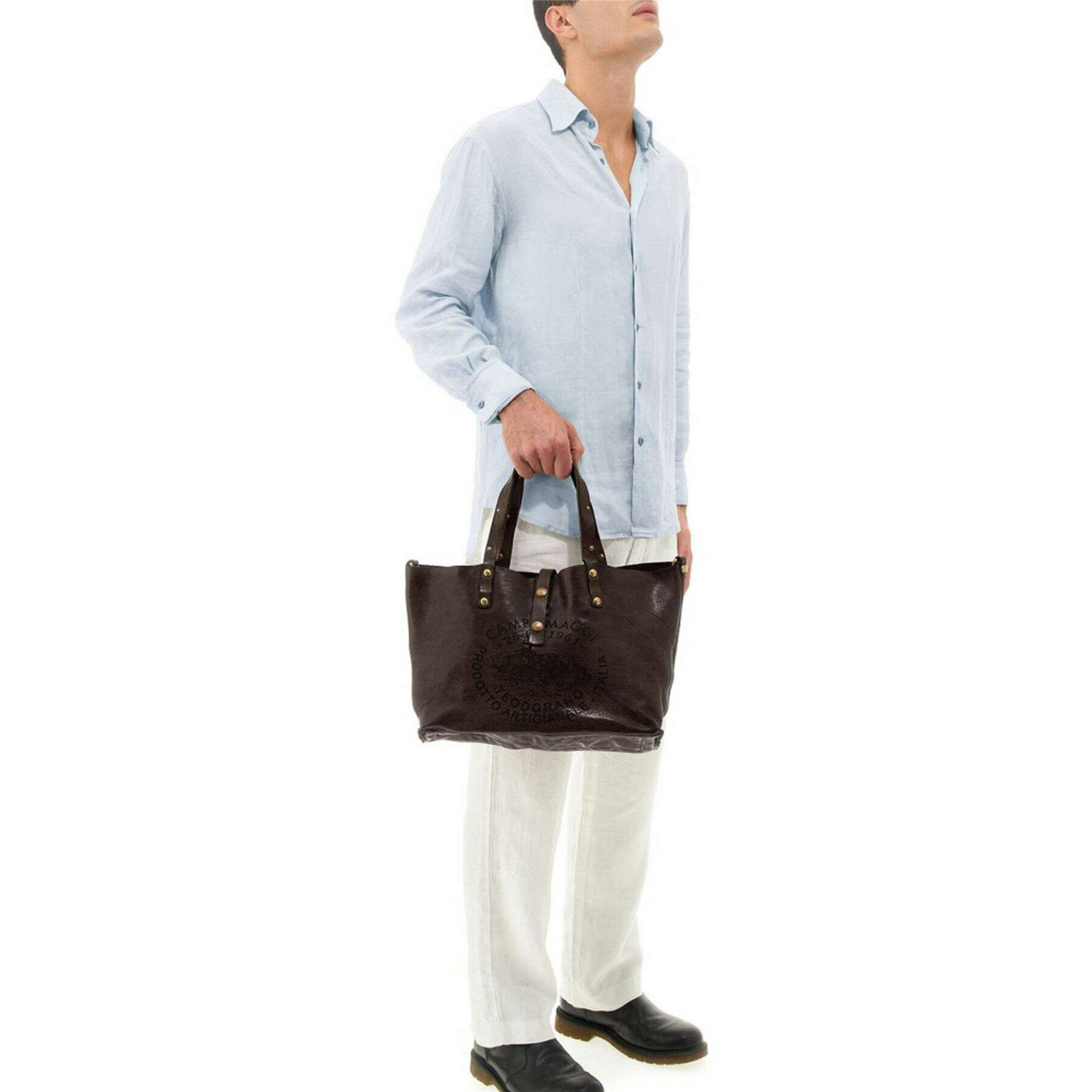Tillverkad av 100 % kohud är denna moro-bruna shoppingväska i teodorano bella för kvinnor av designern Campomaggi. Den mäter 29 cm (höjd) x 36/45 cm (bredd) x 10 cm (djup). Campomaggi har gjort denna teodorano bella shoppingväska i Italien. Det rekommenderas att borsta med en fuktig trasa och undvika att använda rengöringsmedel för att hålla denna påse i gott skick. Alla påsar levereras kompletta med campomaggi-förpackning. Campomaggi Teodorano Bella Shopping Bag - Moro Brown vackert designad är ett måste för dem som vill lyfta sin vardagliga look. Det stora huvudfacket erbjuder bra förvaring för dina nödvändigheter och mer och två fickor för dina små bitar och bobs, samtidigt som det har en magnetisk knappstängning för enkel åtkomst när du är på språng. Den är tillverkad av premiumläder och har en vacker vintage-inspirerad färg som uppnås genom vegetabilisk garvning, en traditionell process som använder naturliga ingredienser för en rik finish. För extra bekvämlighet och mångsidighet finns en extra justerbar avtagbar crossbody-rem för en vardaglig look.