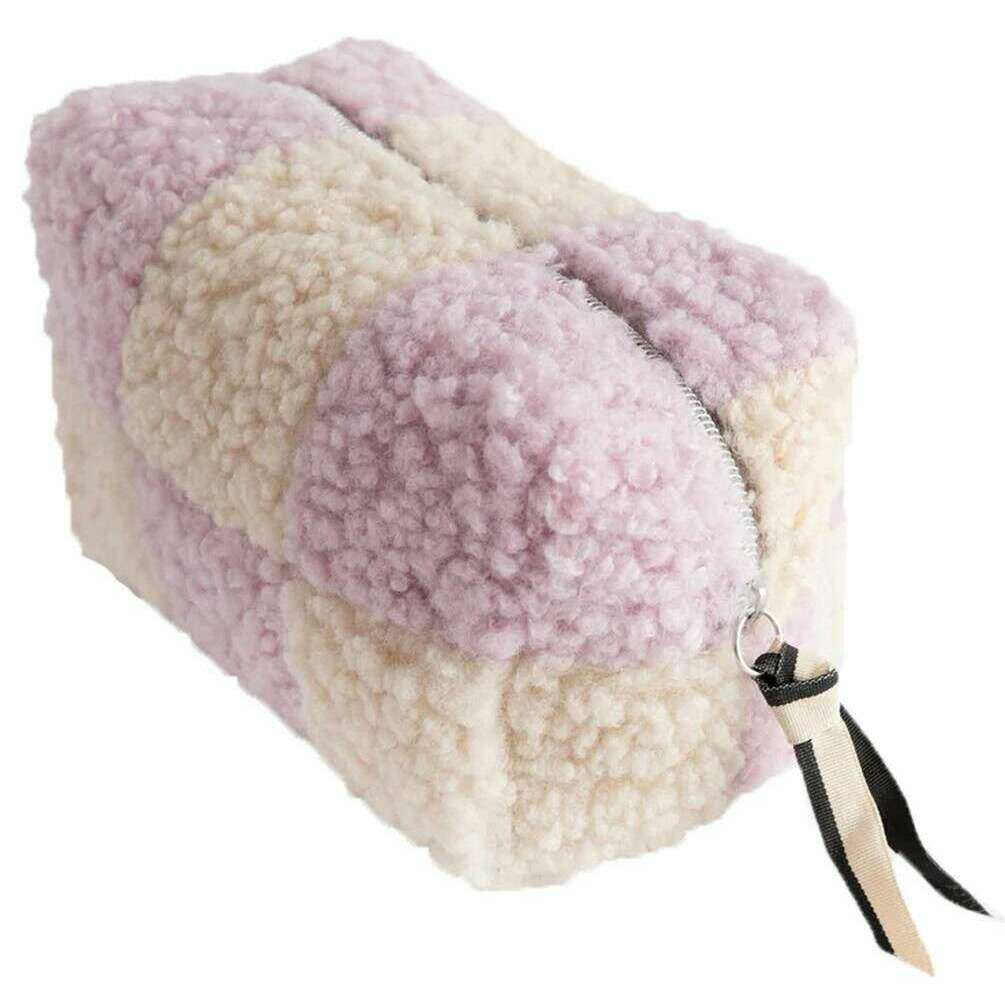 Caroline Gardner Check Borg Cube Cosmetic Bag - Lilac/Cream