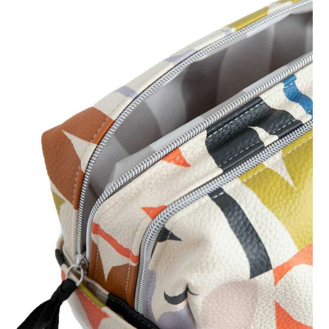 • Dubbel blixtlåsstängning , 2 sektioner , grepphandtag , silverhårdvara , Grosgrain pulls