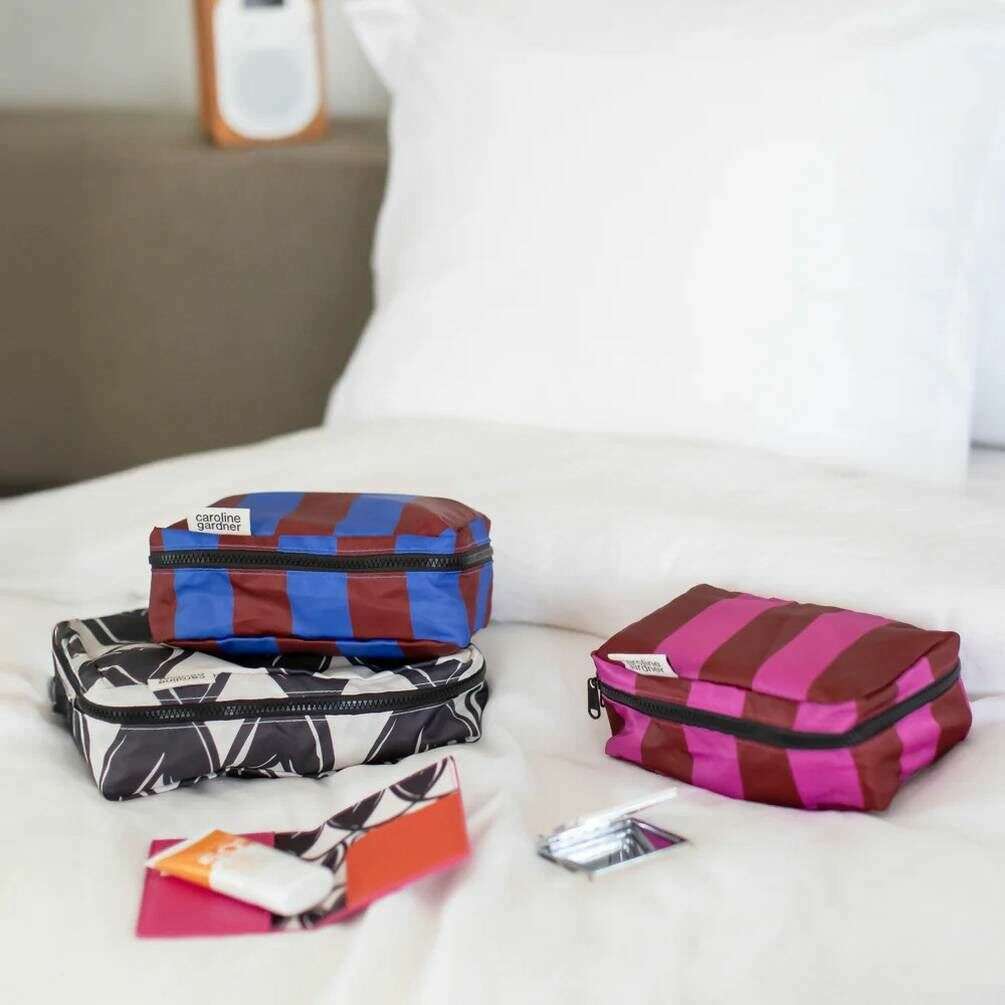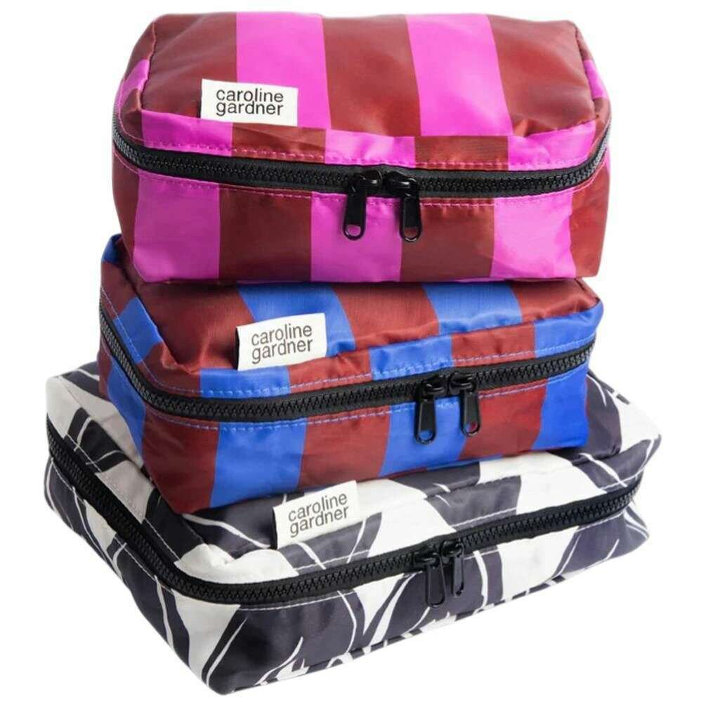 Caroline Gardner Mono Linked Hearts and Stripe Set med 3 små packningskuber - Svart/Blå/Rosa