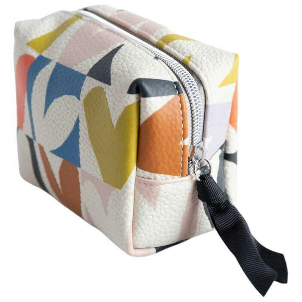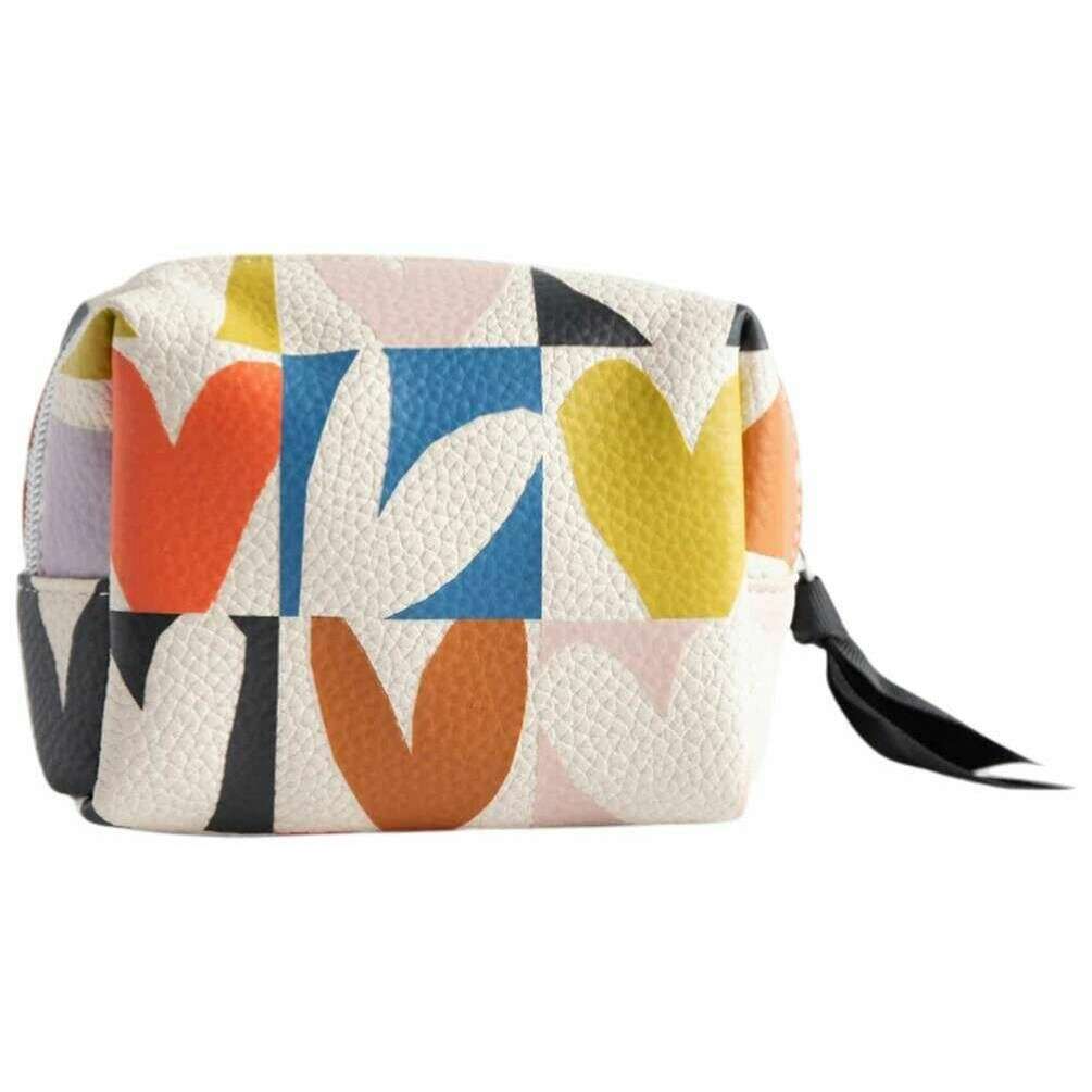 Caroline Gardner Multi Schackmatt Heart Mini Cube Kosmetikväska - Vit/Blå/Orange