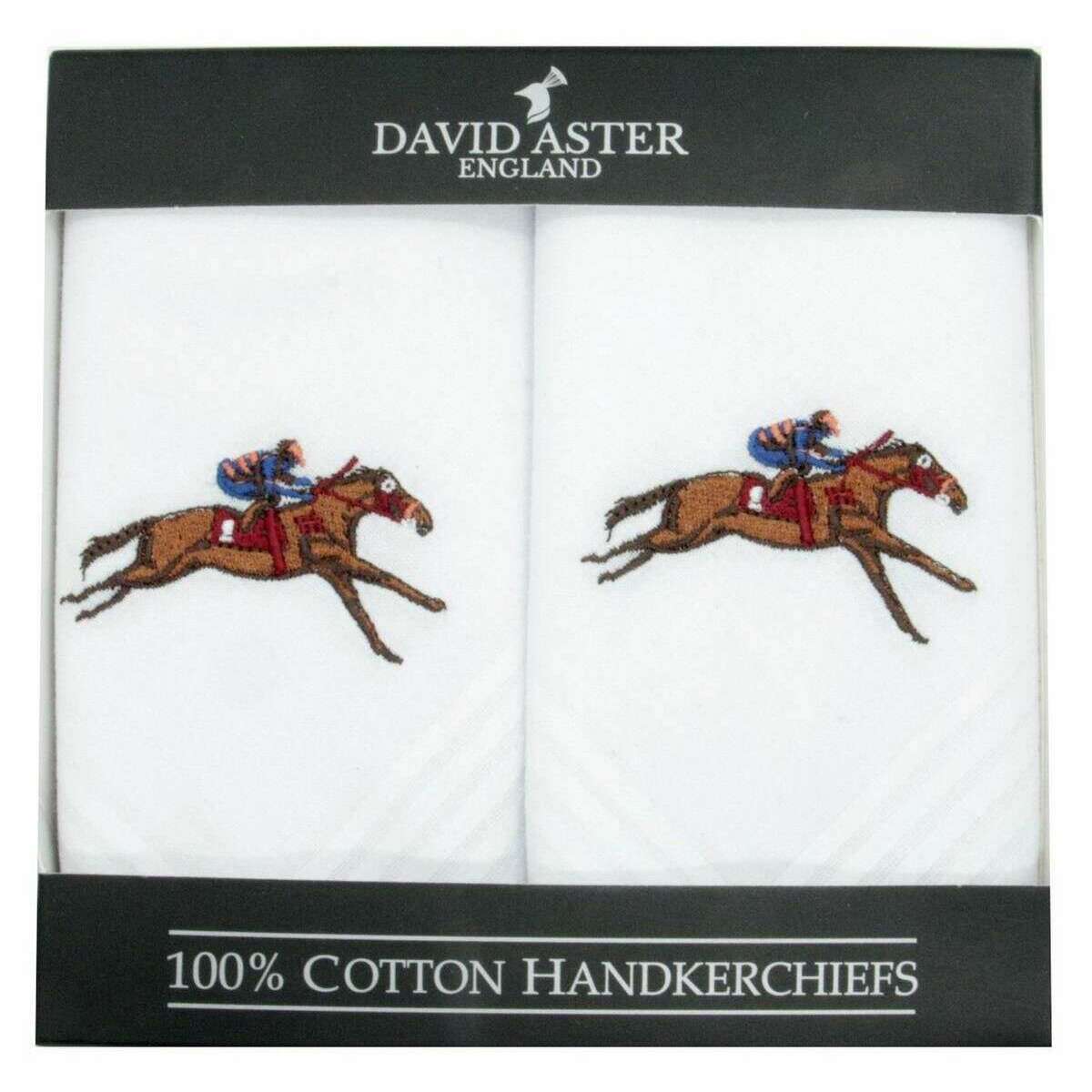 Perfekt för män är denna David Aster vita tävlingshäst broderade näsdukar, den är också gjord av 100% bomull. 2-pack näsdukar är valuta för pengarna vilket säkerställer att de är ett bra köp. Alla näsdukar levereras kompletta med en david aster presentationslåda. David Aster Racehorse Broderade näsdukar - Vit är ett fantastiskt pack att äga med den med en kapplöpningshäst på var och en med vit bakgrund. För att imponera, kommer detta garanterat att ge din klädsel den perfekta avslutande trendiga looken på grund av dess personliga design som gör att du sticker ut från mängden. Gör detta till en fantastisk present till alla rasfanatiker.