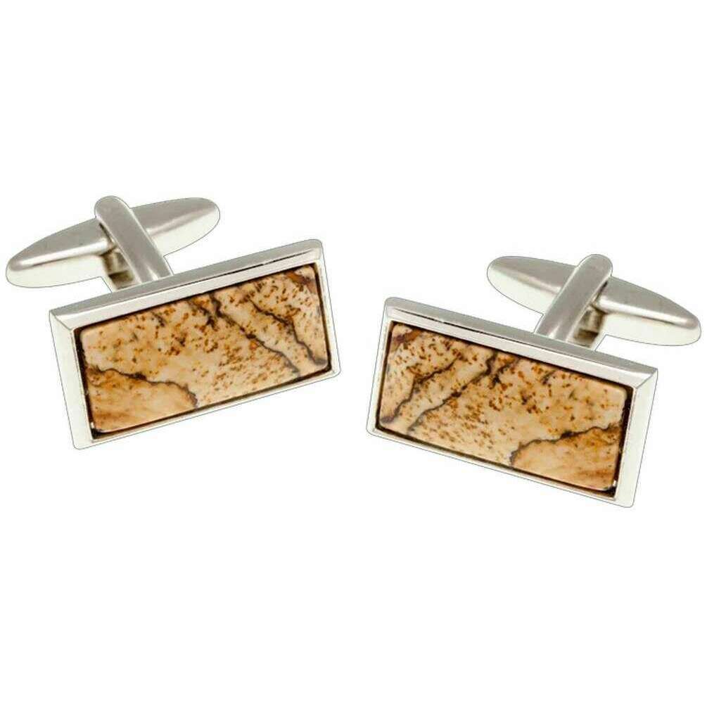 • Cabochon Halvädel Jaspissten, Starka polerade kanter, Standard Manschettknapp Bascule