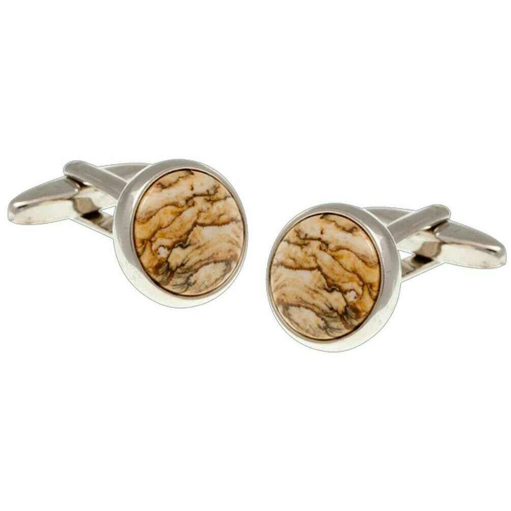 Dessa runda manschettknappar i jaspis av David Van Hagen använder silverbaserad metall och är perfekta för män och ett måste. Alla manschettknappar kommer komplett med david van hagen-förpackning. David Van Hagen Jasper Runda Manschettknappar - Beige/Silver har en avslappnad men elegant design i silver och jaspis, inkapslade i en rund form som gör dem till den perfekta accessoaren till alla formell outfit. Dessa manschettknappar är sofistikerade och iögonfallande.