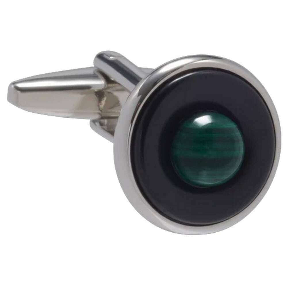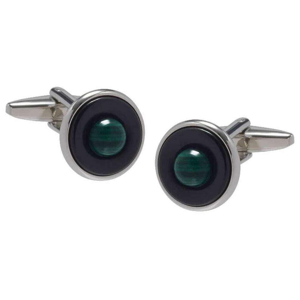 • Inspirerad av Rings of Saturn, Green Malachite Cabochon Center, Onyx Stone Middle, Natural Semi-Precious Stones, Standard Cufflink Bascule