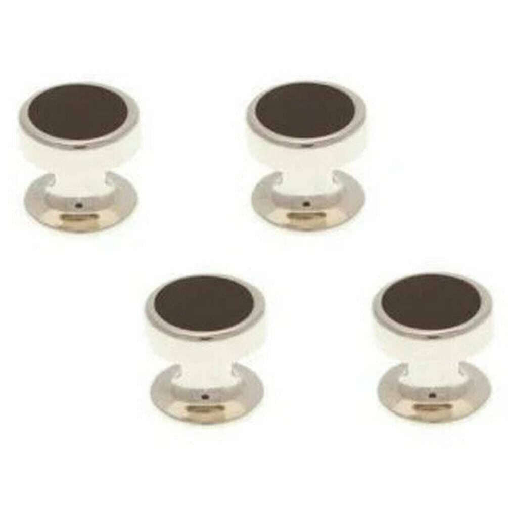 Tillverkade av oädel metall är dessa runda klänningsnubbar i svart/silver för män av designern David Van Hagen. Alla skjortnubbar kommer komplett med david van hagen-förpackning. David Van Hagen Onyx Round Dress Studs - Black/Silver är det perfekta enkla men stilrena klänningssetet för vardagsbruk som säkert kommer att fånga andras ögon. Den vackra halvädelstenen i onyx i ett silver runt fodral ger djup och en touch av sofistikerad stil.