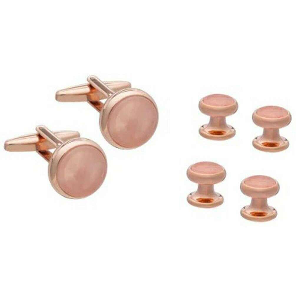 David Van Hagen Rose Quartz Klänning Stud och Manschettknapp Set - Rosa/Rose Gold