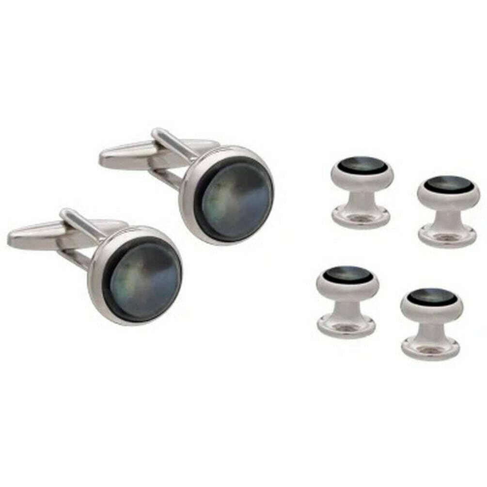 David Van Hagen Smokey Mother Of Pearl Klänning Stud och Manschettknapp Set - Grå/Silver