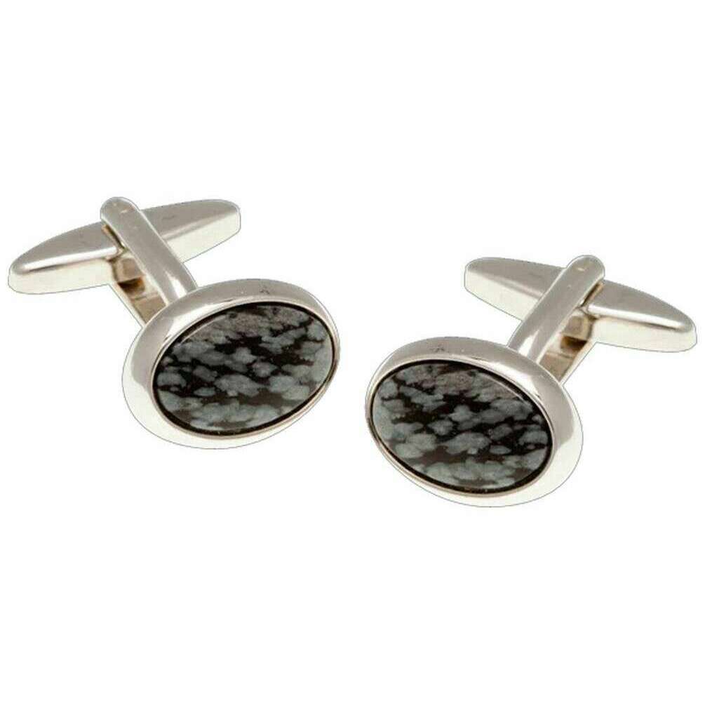 • Cabochon Semi-Precious Snowflake Stone, polerade kanter, standard manschettknapp bascule