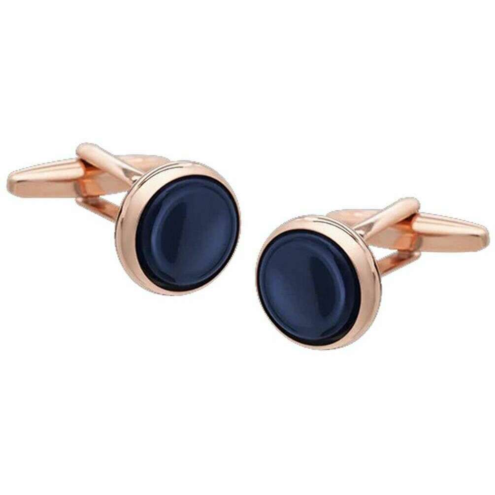 • Standard manschettknapp bascule, 14 mm diameter, konkav dopp sodalit sten, naturliga halvädelstenar, roséguld hölje