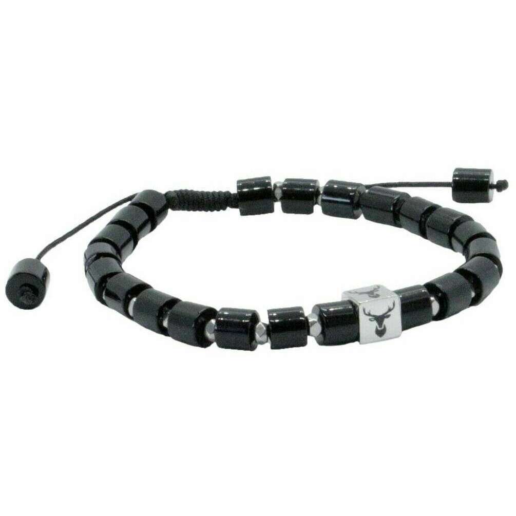 Detta herrhjorts-agatarmband har tillverkats av läder och pärlor, presenterat i en svart färg och är från märket David Van Hagen. Alla armbanden levereras kompletta med en david van hagen-väska. David Van Hagen Stag Bead Agate Armband - Svart är det perfekta armbandet för alla herrar som vill ge en extra touch till sin klädsel. Den justerbara stängningen är perfekt för handleder i alla storlekar för en anpassad passform oavsett om den är lös eller åtsittande beroende på önskemål. Med en Stag mittpunkt ger den en personlig touch och en subtil detalj.