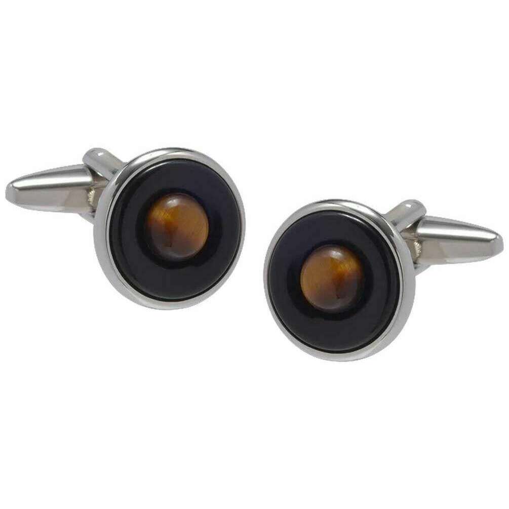 • Inspirerad av Rings of Saturn, Tiger Eye Cabochon Center, Onyx Stone Middle, Natural Semi-Precious Stones, Standard Cufflink Bascule