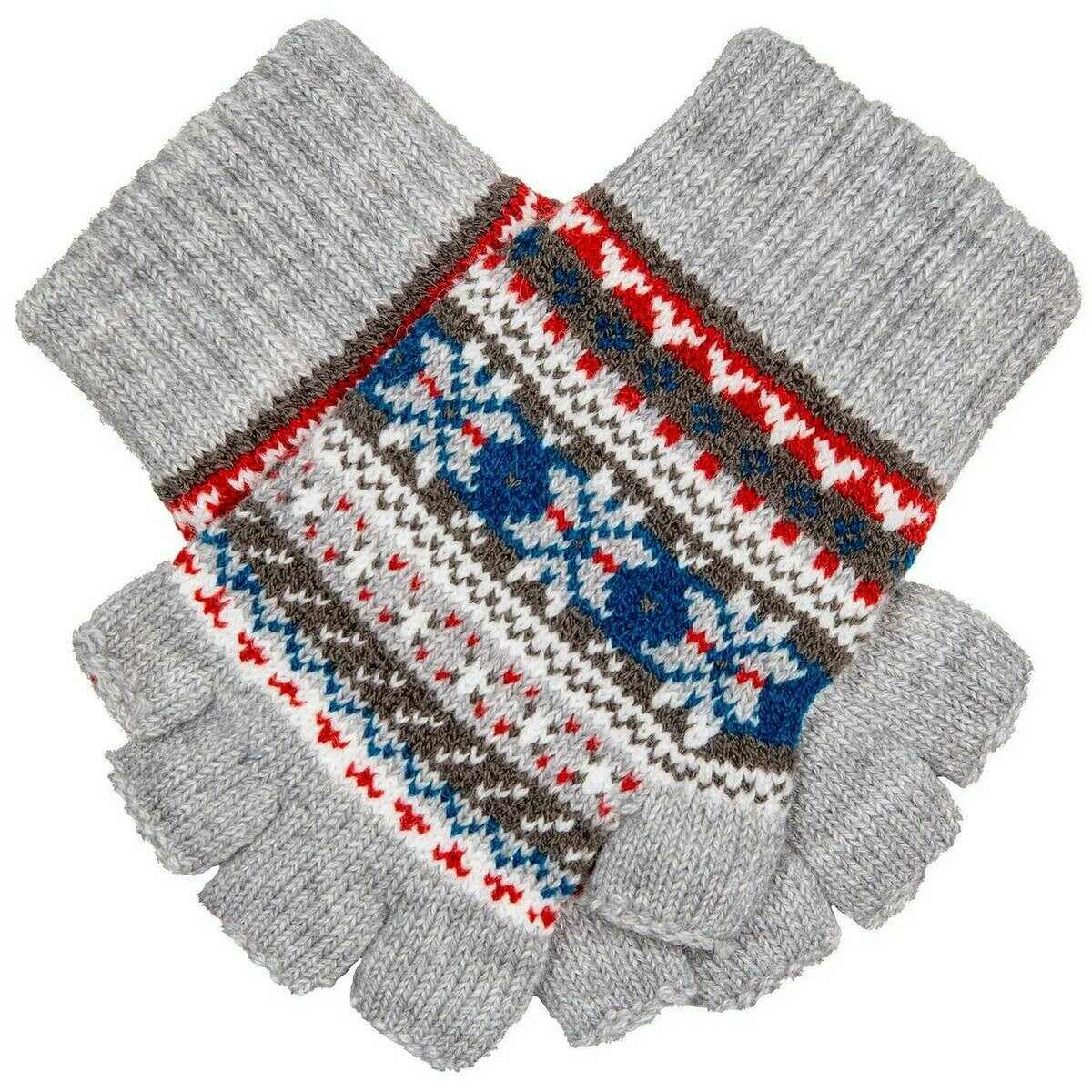Bucklor abstrakt halvfinger stickade handskar - duva grå