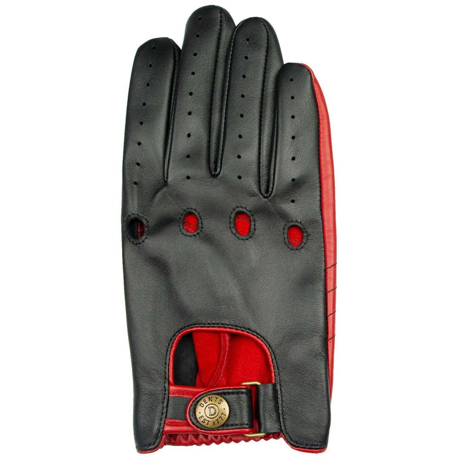 Dents Aintree tvåfärgade körhandskar i läder - Svart/Bärröd