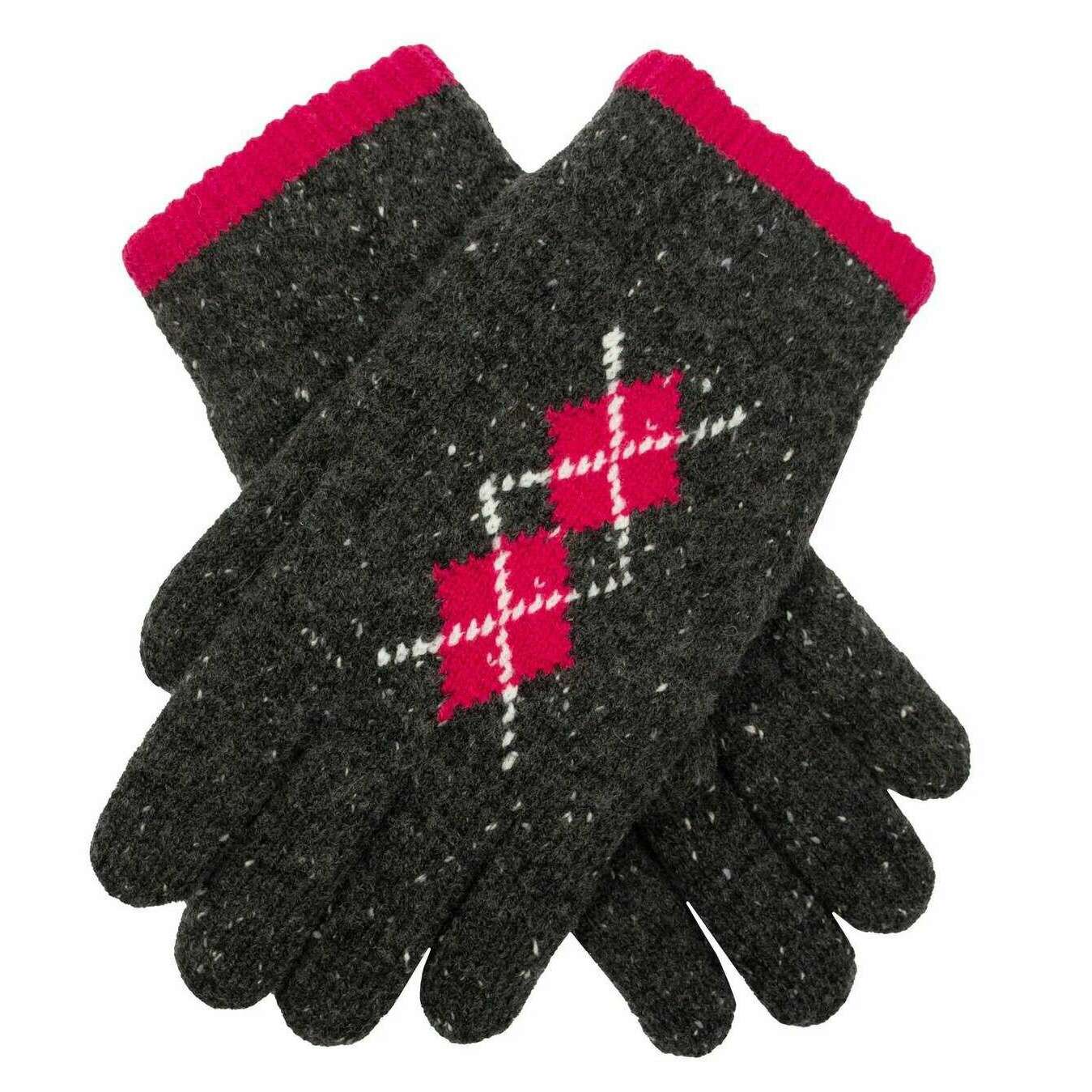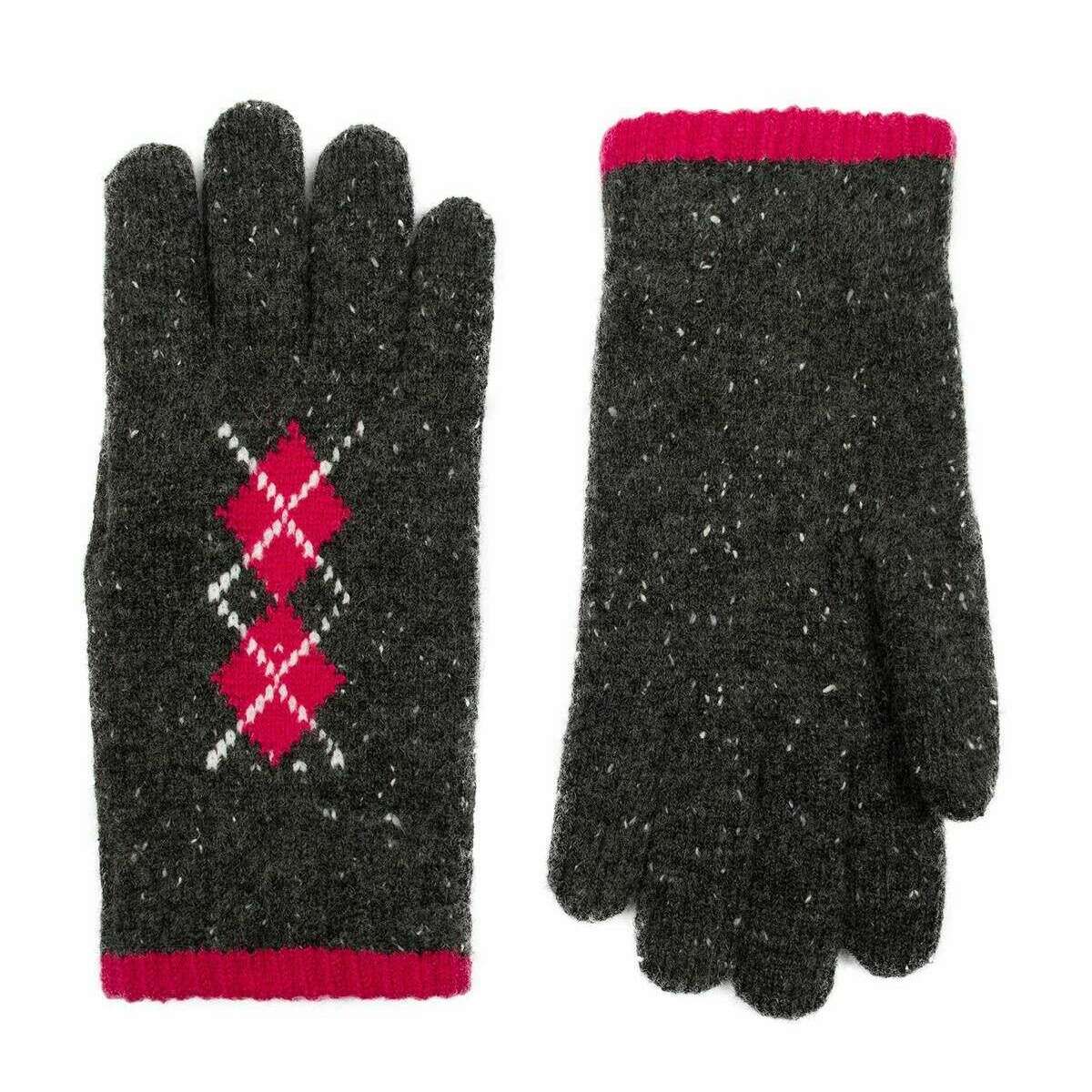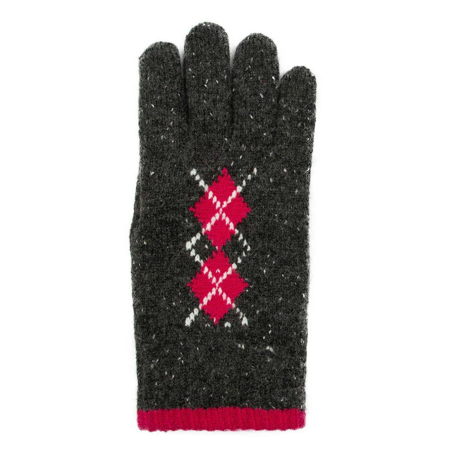 Bucklor Argyle Marl garn stickade handskar - kol/fuchsia rosa