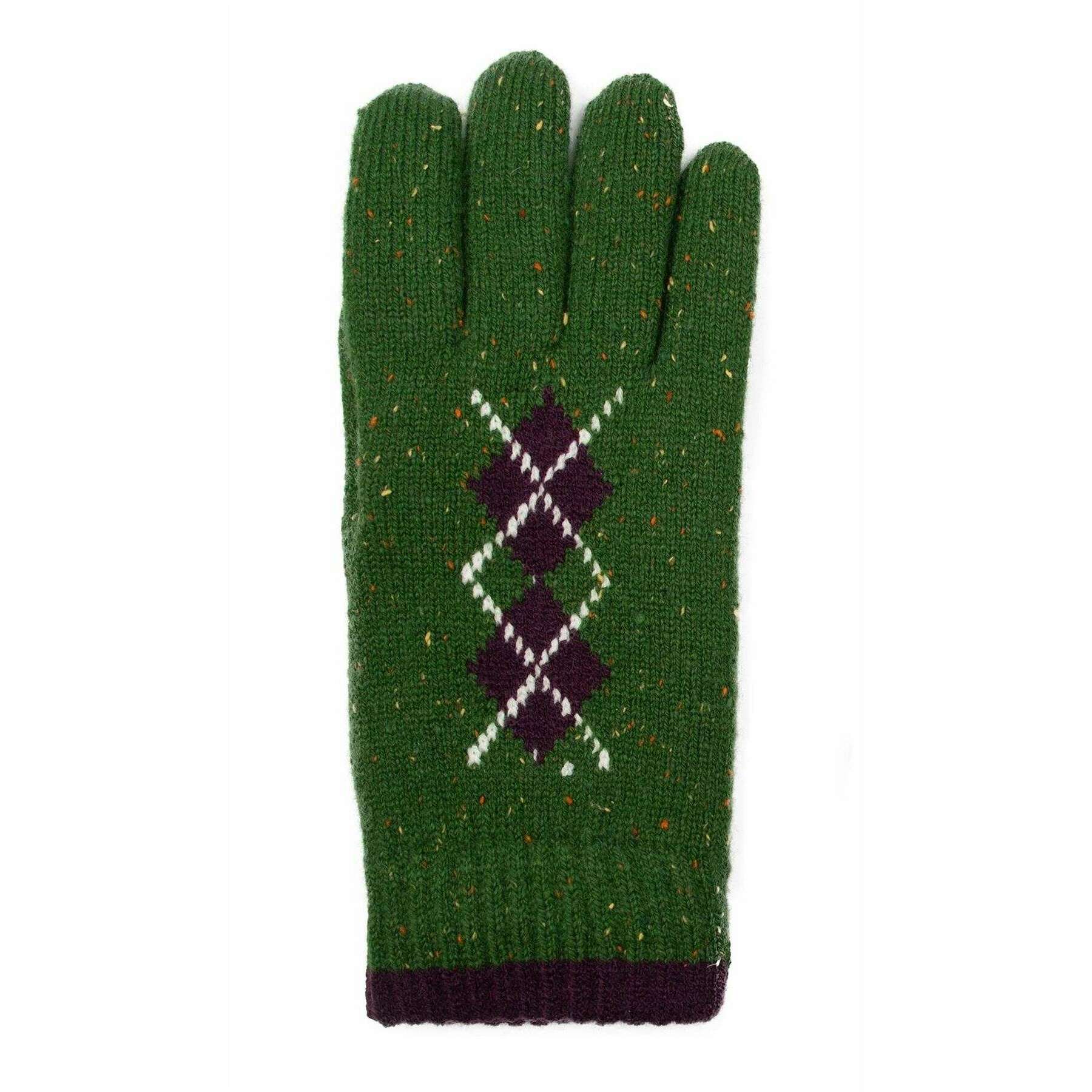 Bucklor Argyle Marl Garn stickade handskar - Emerald Green/Amethyst Purple