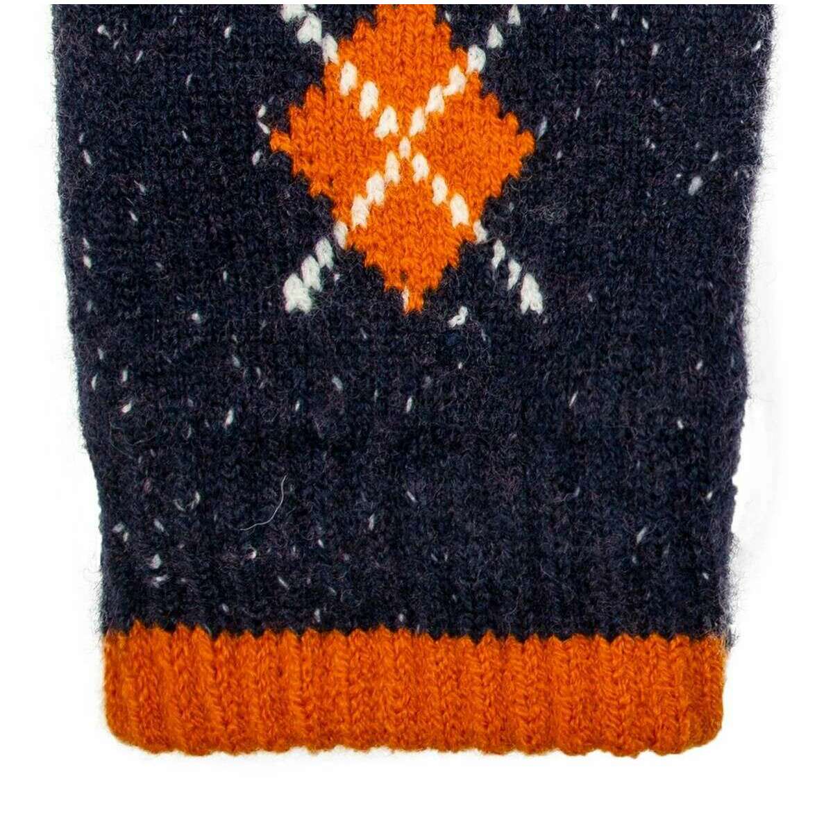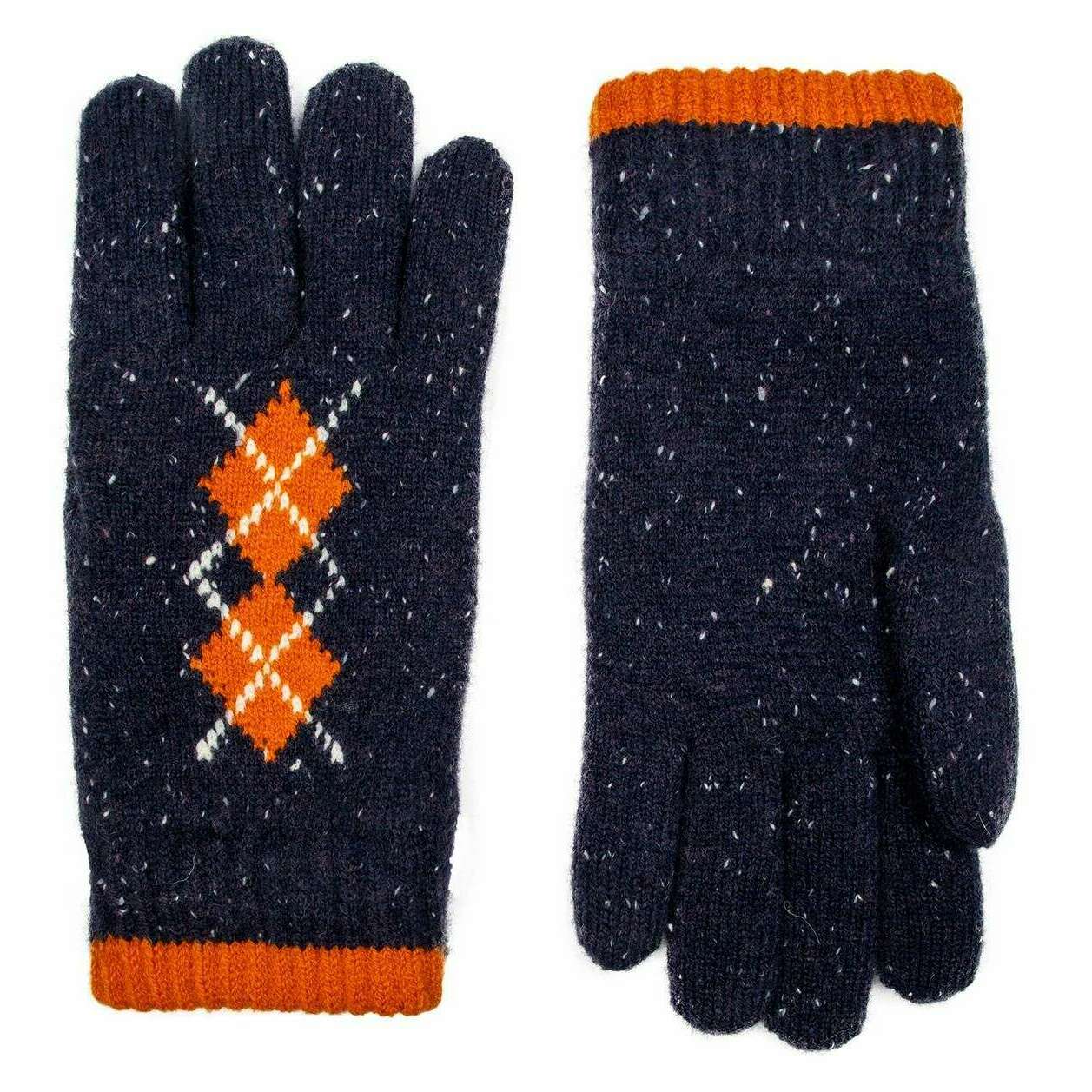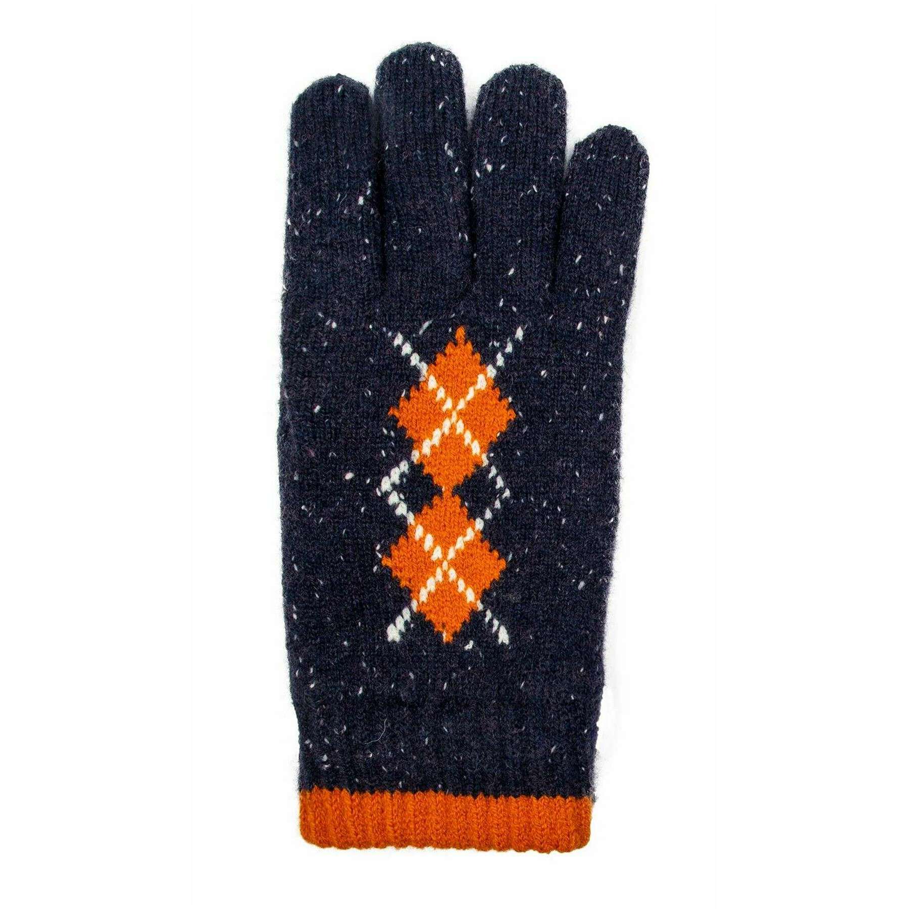 Bucklor Argyle Marl garn stickade handskar - marinblå/pumpa orange