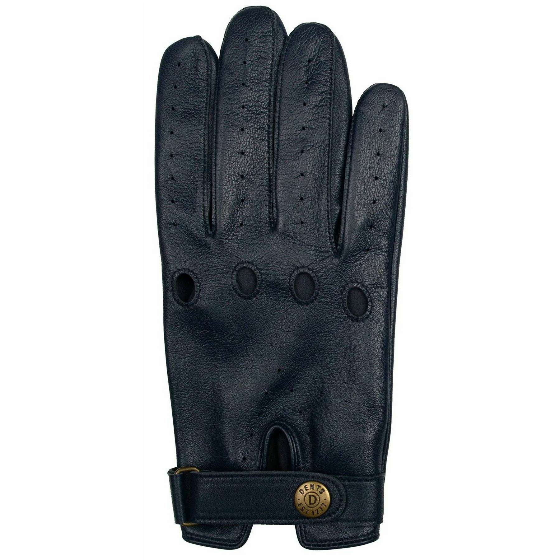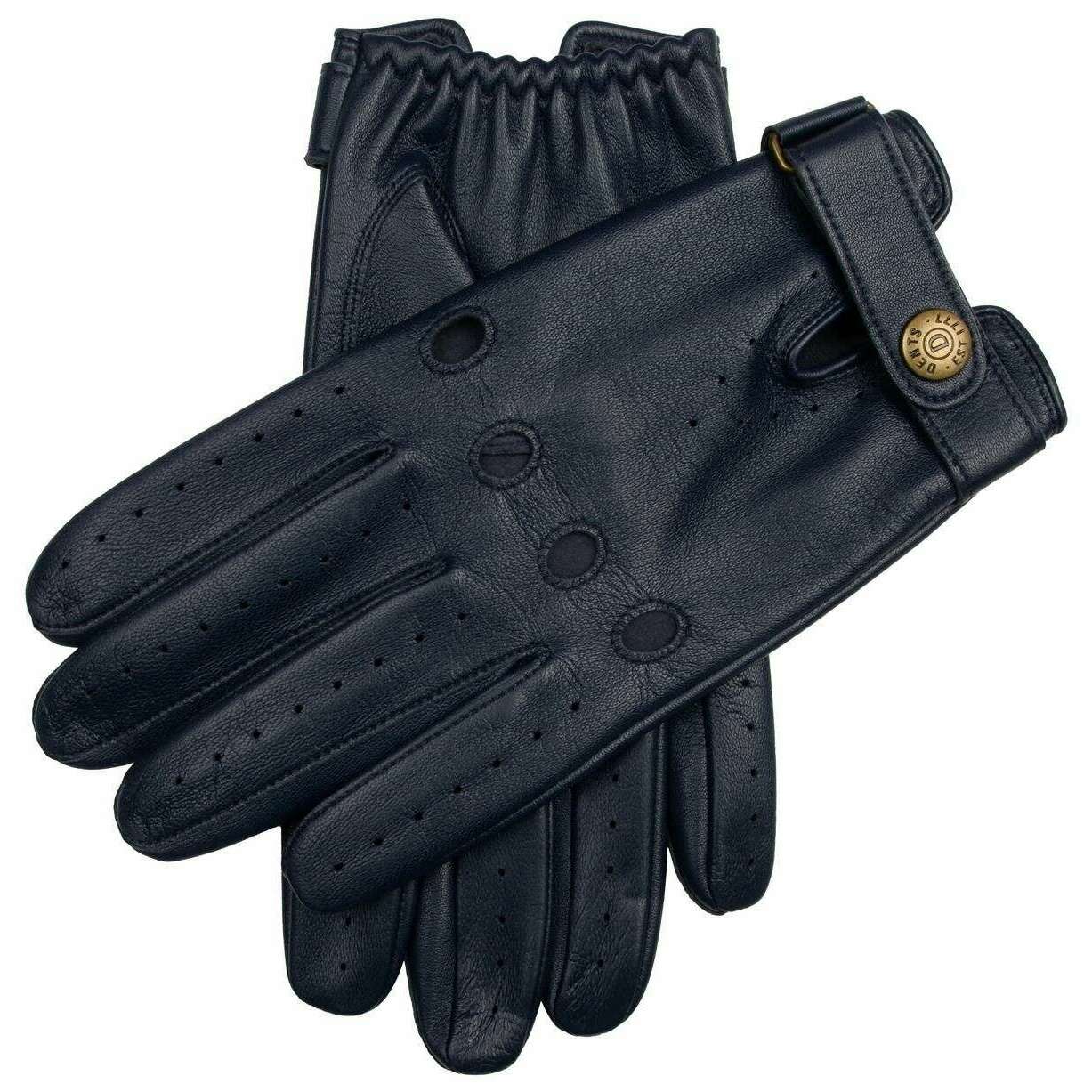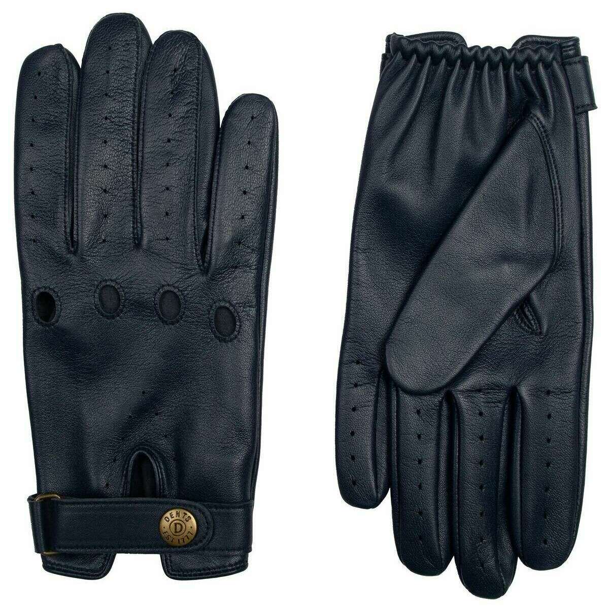 Dessa körhandskar i brooklandsläder från Dents använder marinblått 100 % hårfårskinn och är perfekta för män och ett måste. Även marinhandskarna är designade i ett vanligt mönster, alla handskarna levereras kompletta med bucklor. Dents Brooklands Leather Driving Gloves - Navy erbjuder en twist från den vanliga körhandsken eftersom de inte har de utskurna baksidorna, vilket ger dem en unik finish. Handskarna har intrikata detaljer som perforerade hål i fingrarna och handflatorna, knoghål och sömmar för en ren finish. Den har en mittstängande handledsrem med elastiska handleder och Dents-nyckel för att ge bäraren en säker och bekväm passform.
