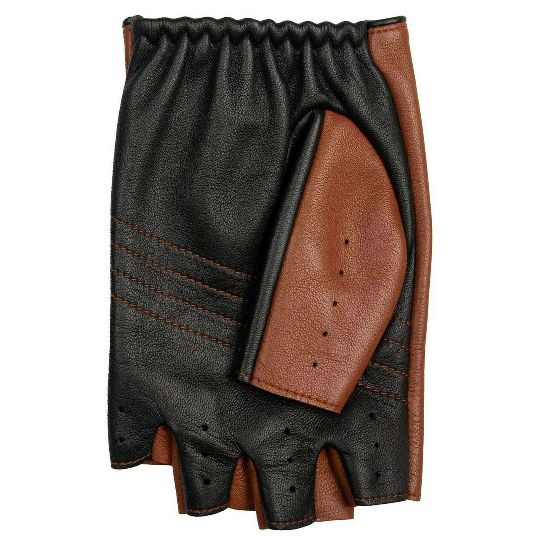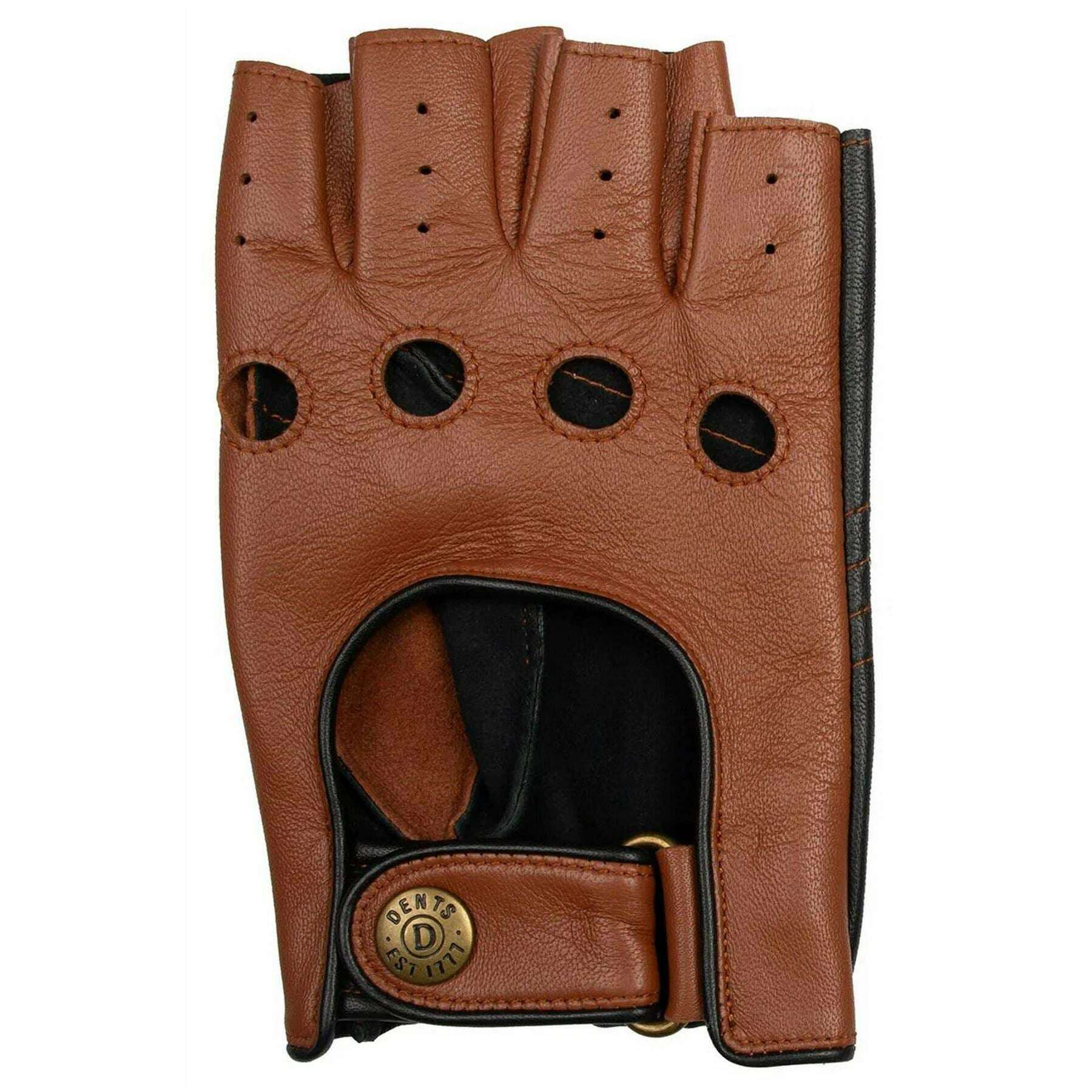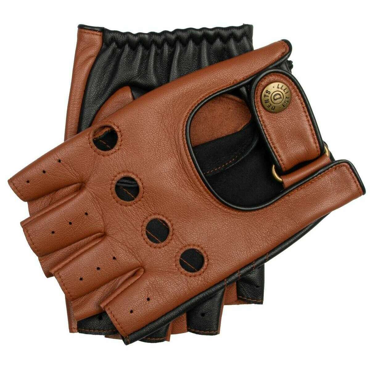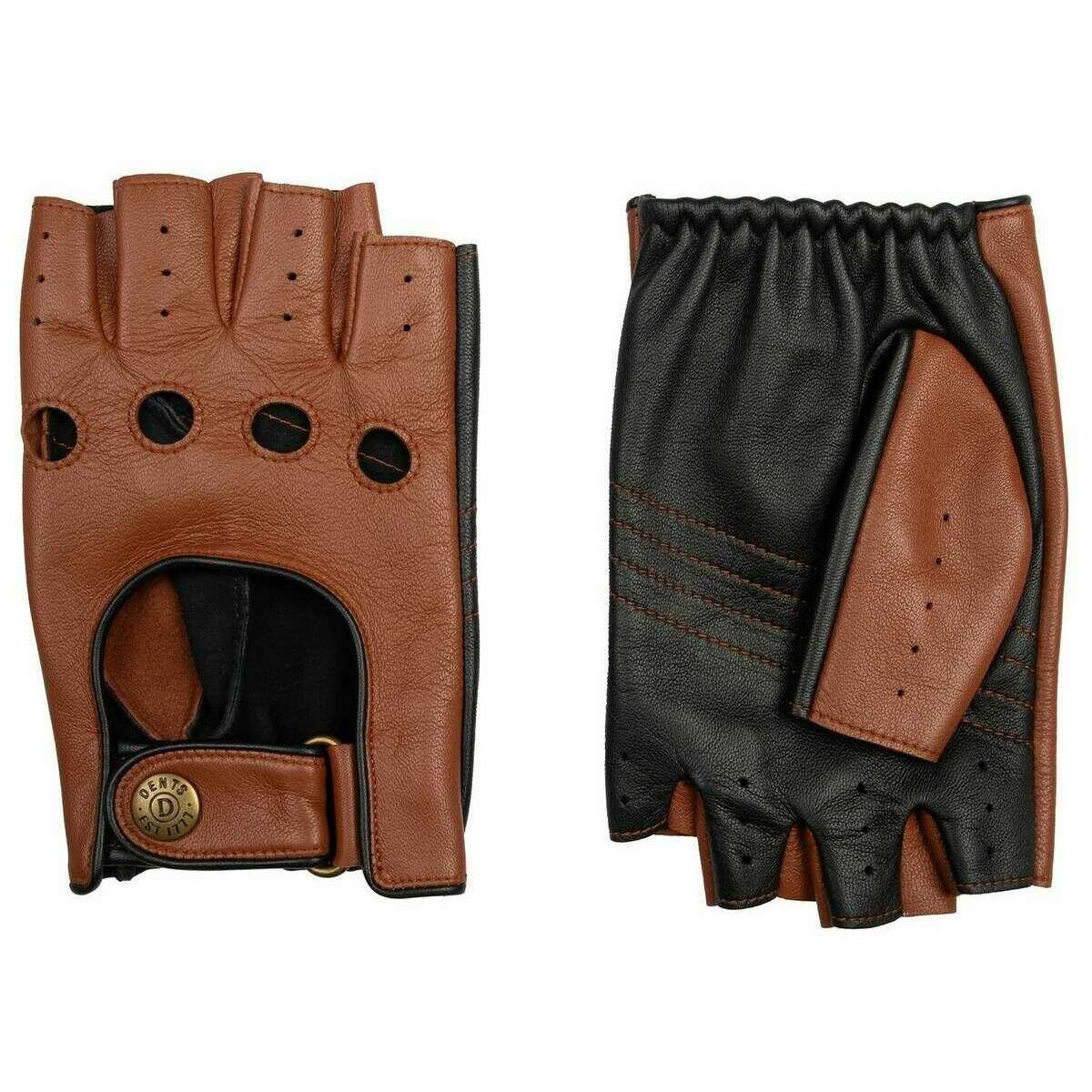 Dents Cadwell Fingerless tvåfärgade körhandskar i läder - Cognac Brun/Svart