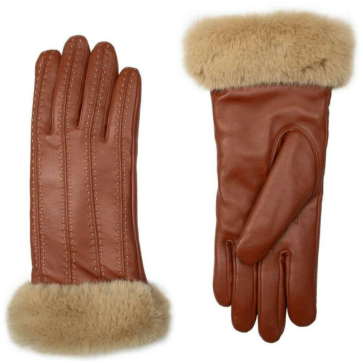 Bucklor Cassie kontrast sömmar läderhandskar - Cognac Tan/Natural Beige