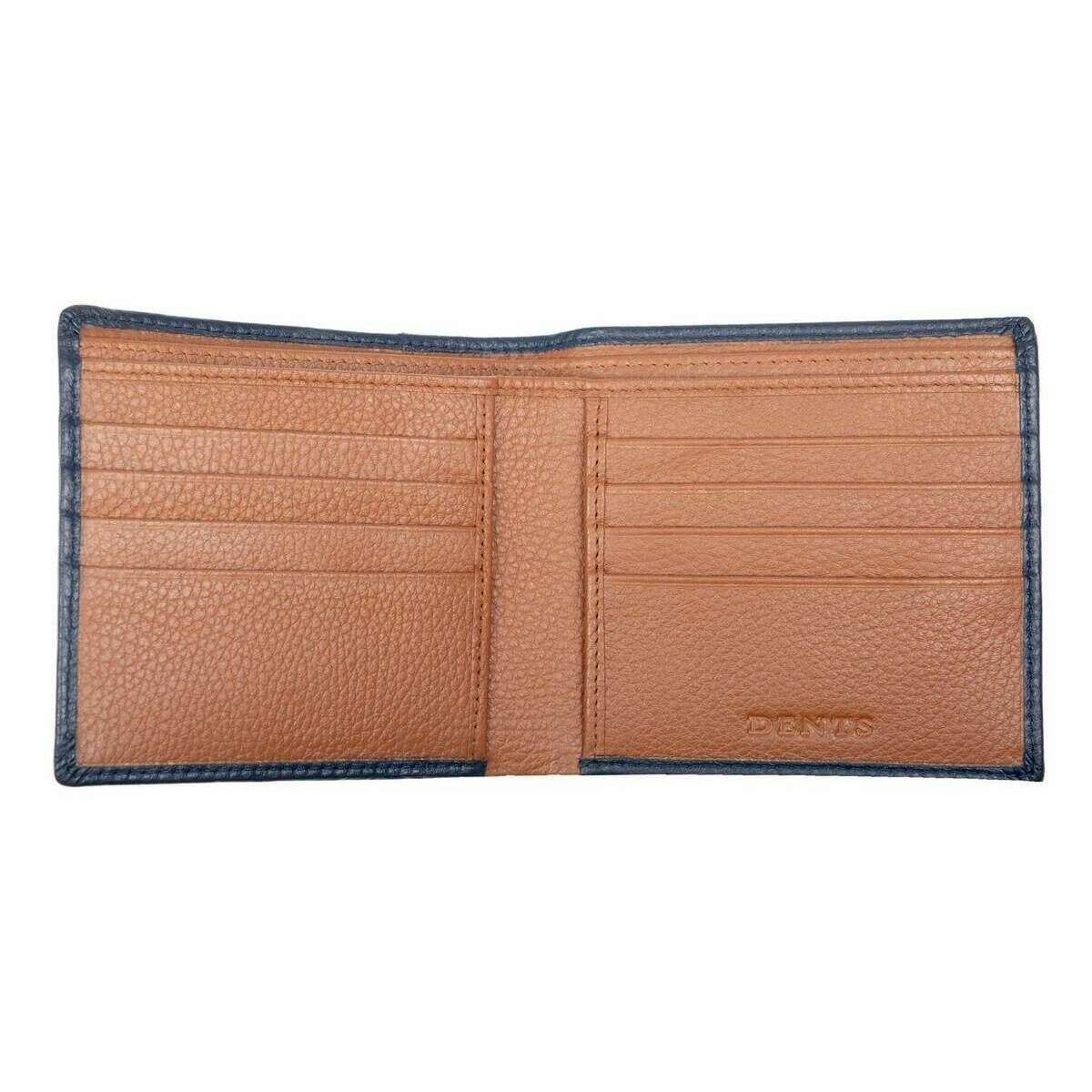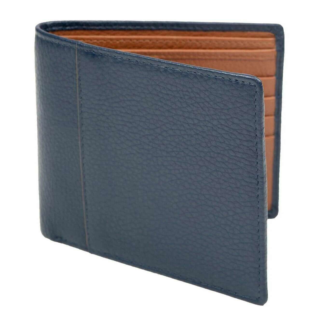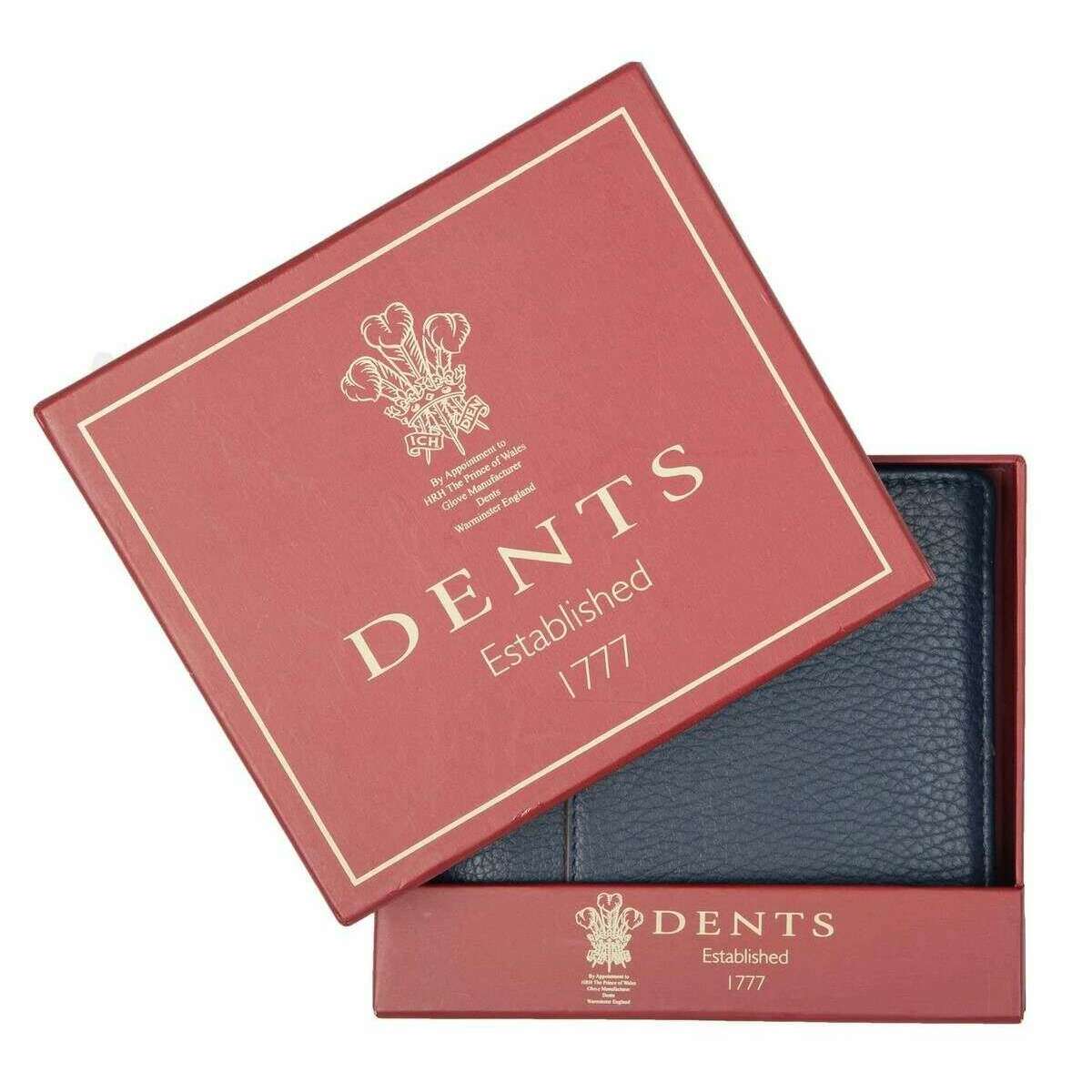 Denna cherwell slimmade bifold-plånbok för män av märket Dents är gjord av 100 % pebble grain läder och visas i marinblått. Den mäter 10 cm (höjd) x 11 cm (bredd). Alla plånböcker levereras kompletta med bucklor. Dents Cherwell Slim Bifold-plånbok - Navy/Cognac Brown har åtta kortfickor, två sedlarsektioner och två slipfickor. Denna dubbelsidiga plånbok är den perfekta presenten! Innerpanelen har den präglade Dents-logotypen som ger plånboken ett sofistikerat utseende. Fodrad med poly twill tyg för en smidig och graciös look har denna stilfulla accessoar en avslappnad elegans över sig.