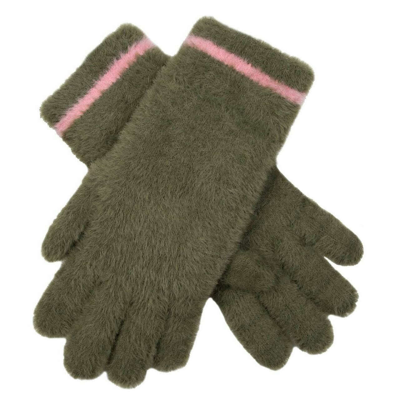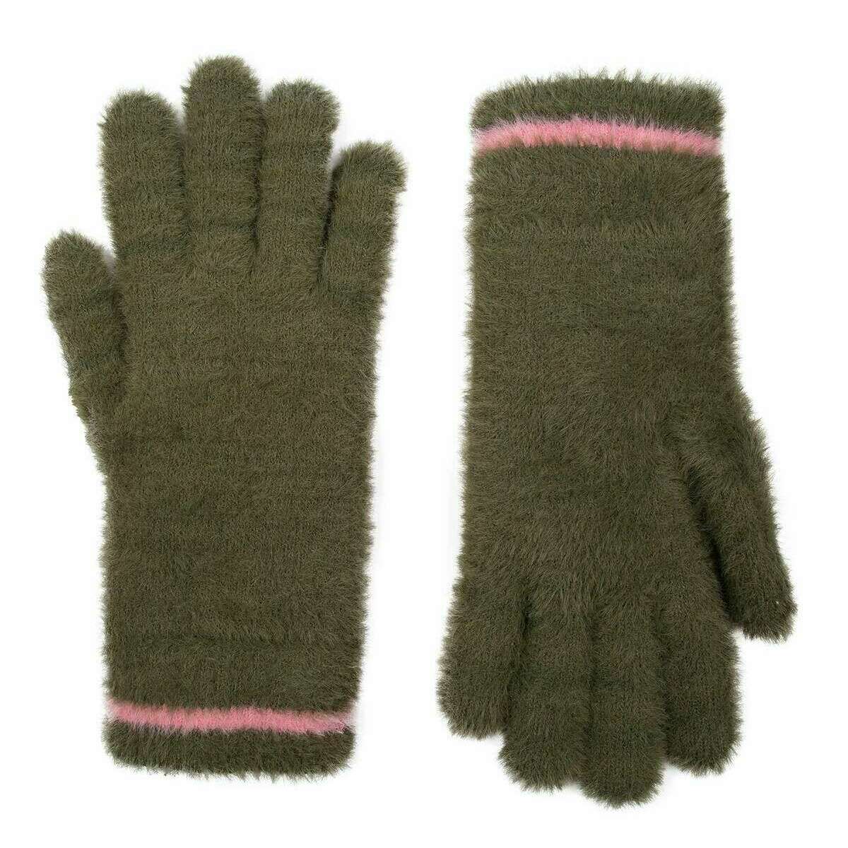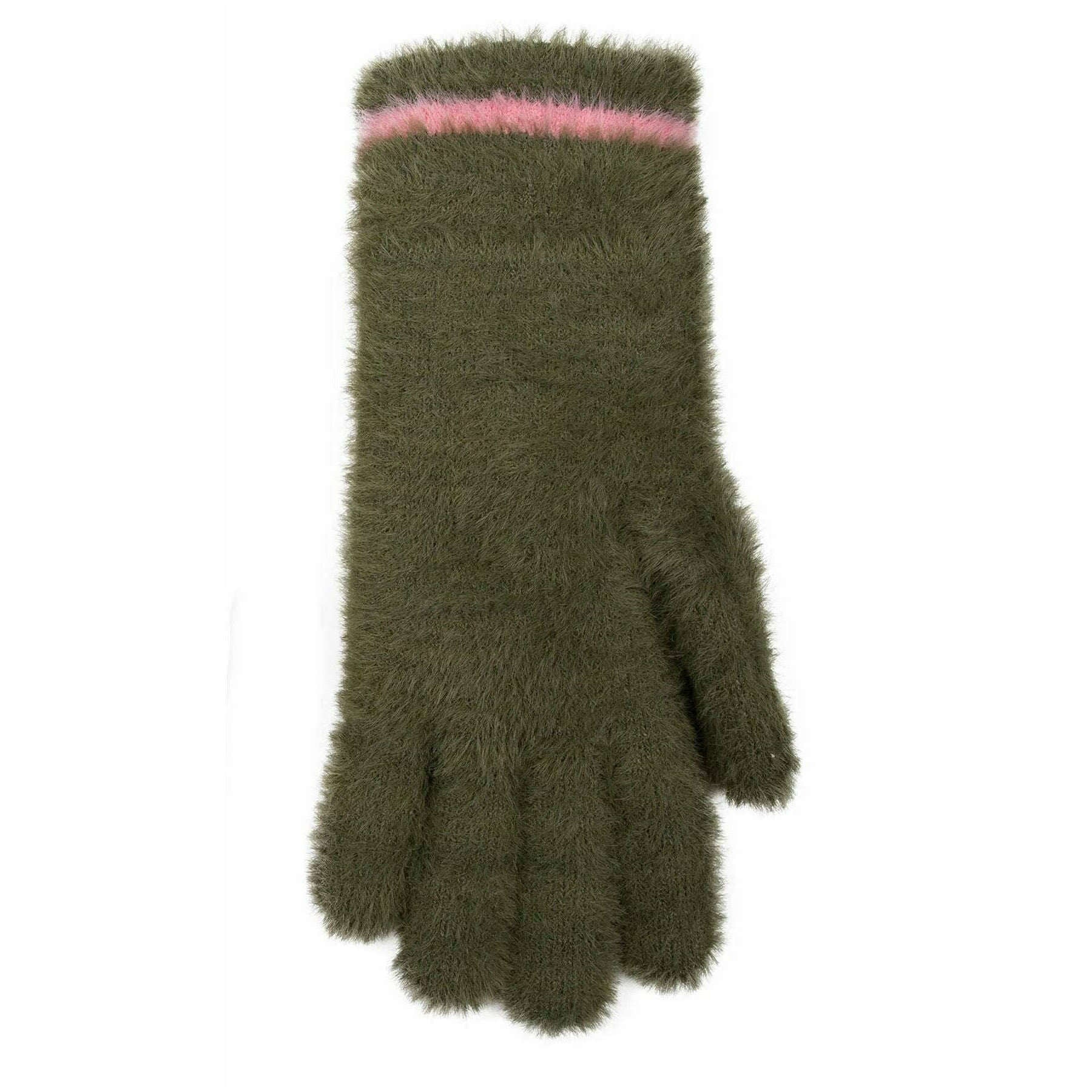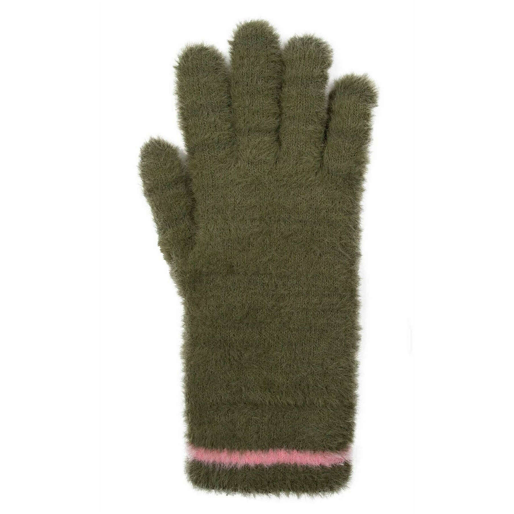 Bucklar fjädergarn stickade handskar - grönt/rosa