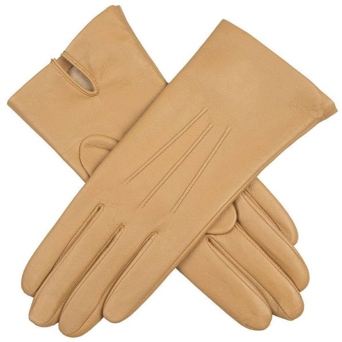 Bucklor Felicity trepunkts silkfodrade läderhandskar - Toffee Beige