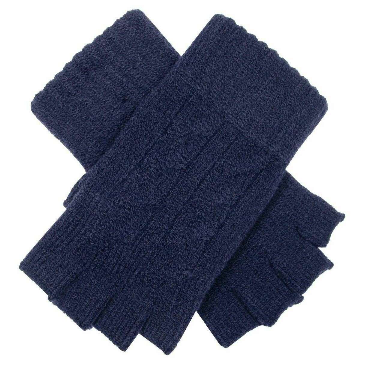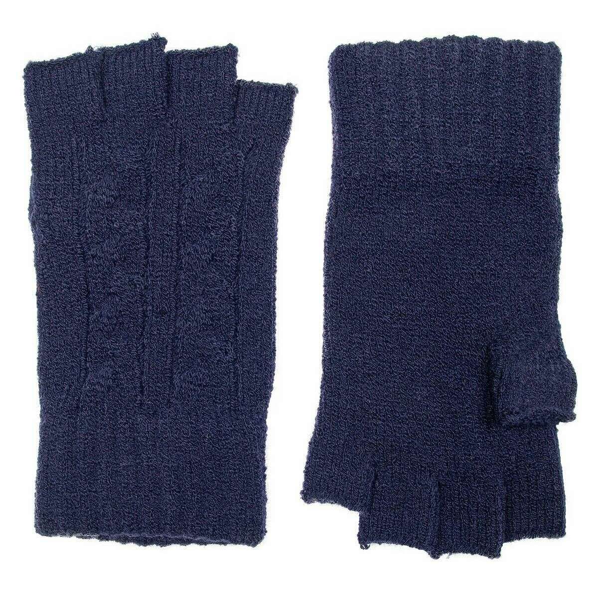 Buckar fingerlösa kabelstickade handskar - marinblå