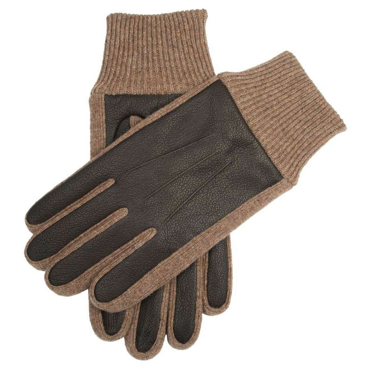 Dents Harrogate Knitted Cuff Läderhandskar - Brun