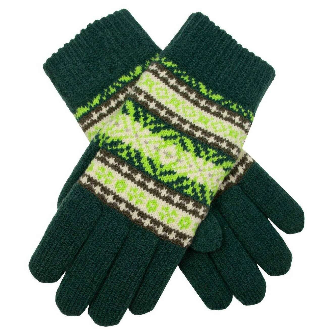 Bucklor Jacquard Fair Isle stickade handskar - olivgrön