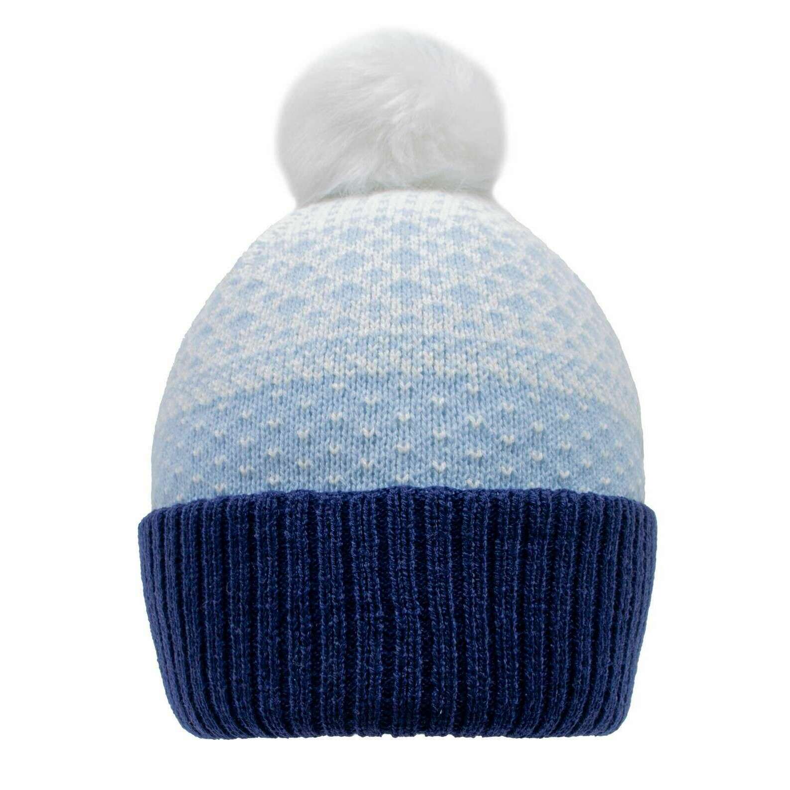 Dents Jacquard Polka Dot Stickad Bobble-mössa - Ljusblå/Navy