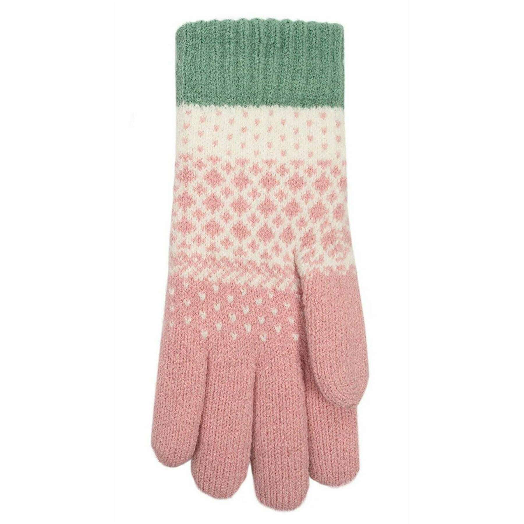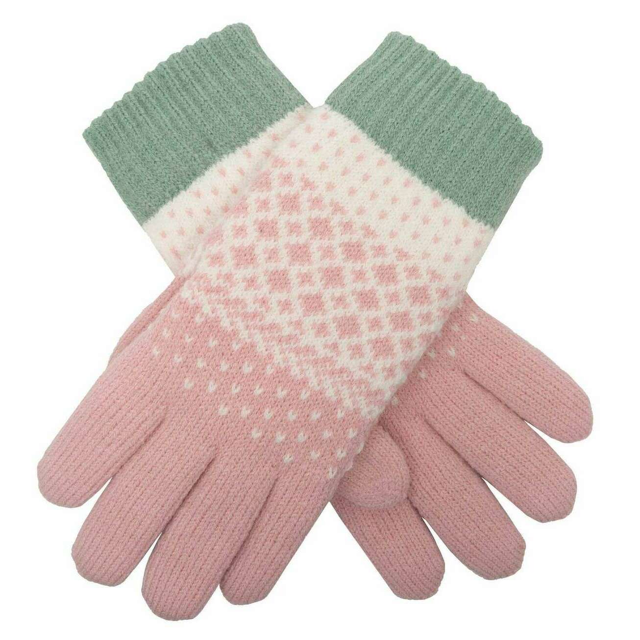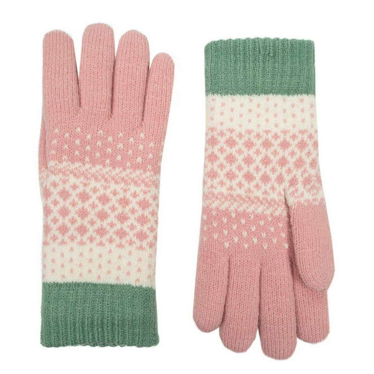 Bucklor Jacquard polka dot stickade handskar - pulverrosa/mynta grön