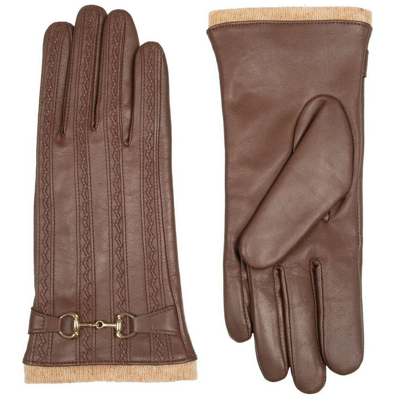 Designerbucklor har gett dig dessa kvinnors 100% frisyrläder och 80% ull och 20% nylonfoderhandskar med kastanjebruna toner. Kastanjbruna handskar är också utformade i ett vanligt mönster, alla handskar är kompletta med bucklor. Bucklarna Keira Touchsreen och vattenresistenta handskar - kastanjbrun är det perfekta vinterkläder som är både snygga och praktiska. Pekskärmsteknologi låter dig använda dina enheter utan att behöva utsätta händerna för kylan. Detta par har en vattenresistent finish, en sömdetaljer, en stickad manschett och en dekorativ snaffle för ett förfinat och sofistikerat utseende. Dessa handskar är ett idealiskt tillbehör för dem som vill lägga till en touch av elegans och praktiska till deras kallt väder garderob.