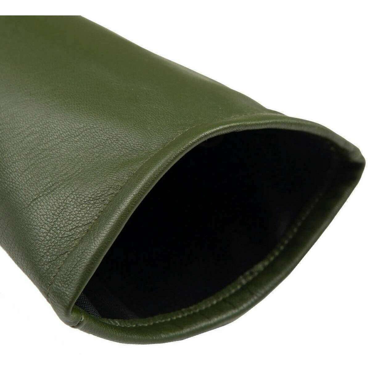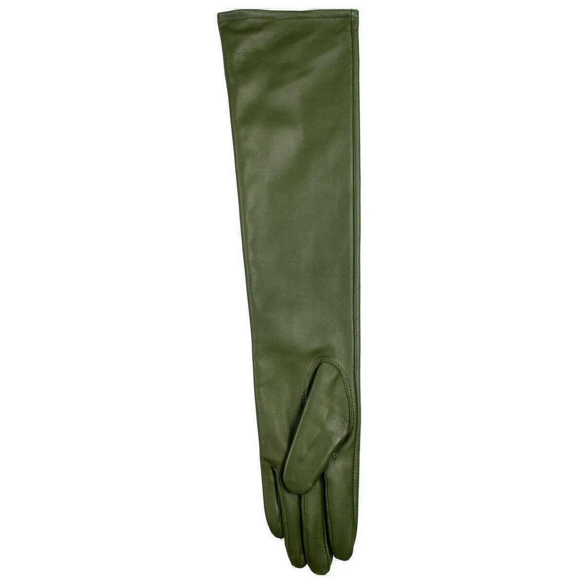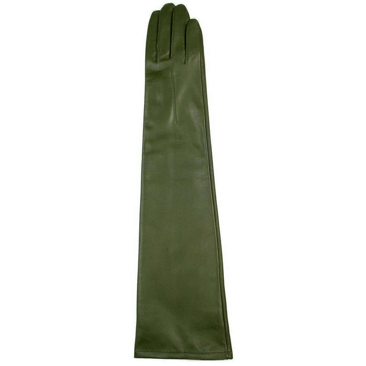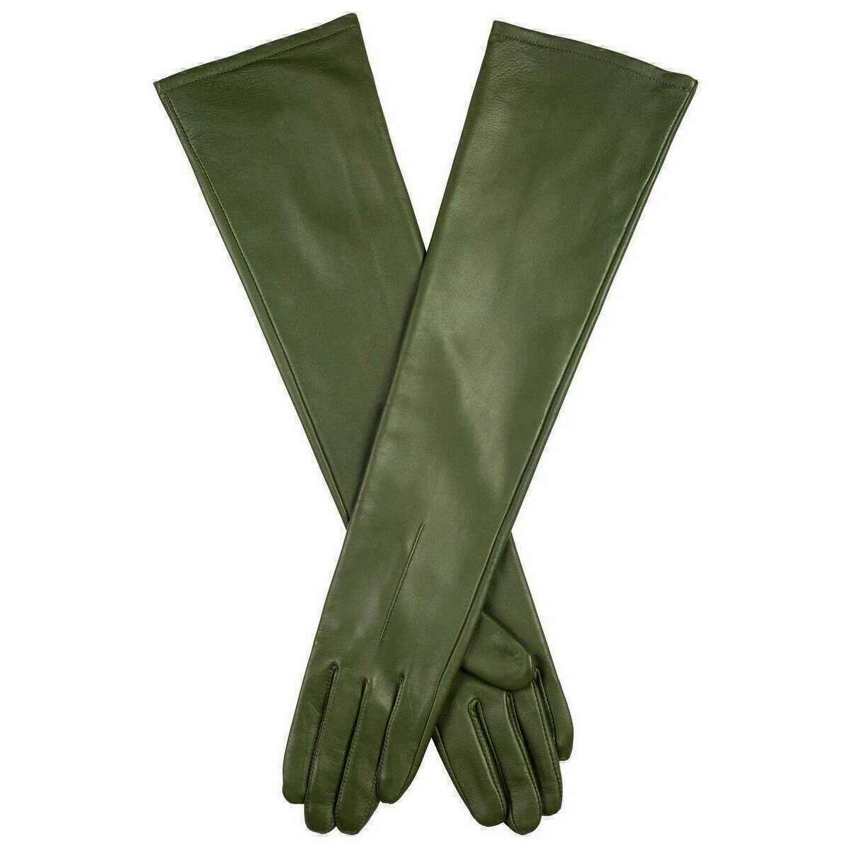 Bucklor mia en enda punkt lång över armbågsläderhandskar - skoggrönt