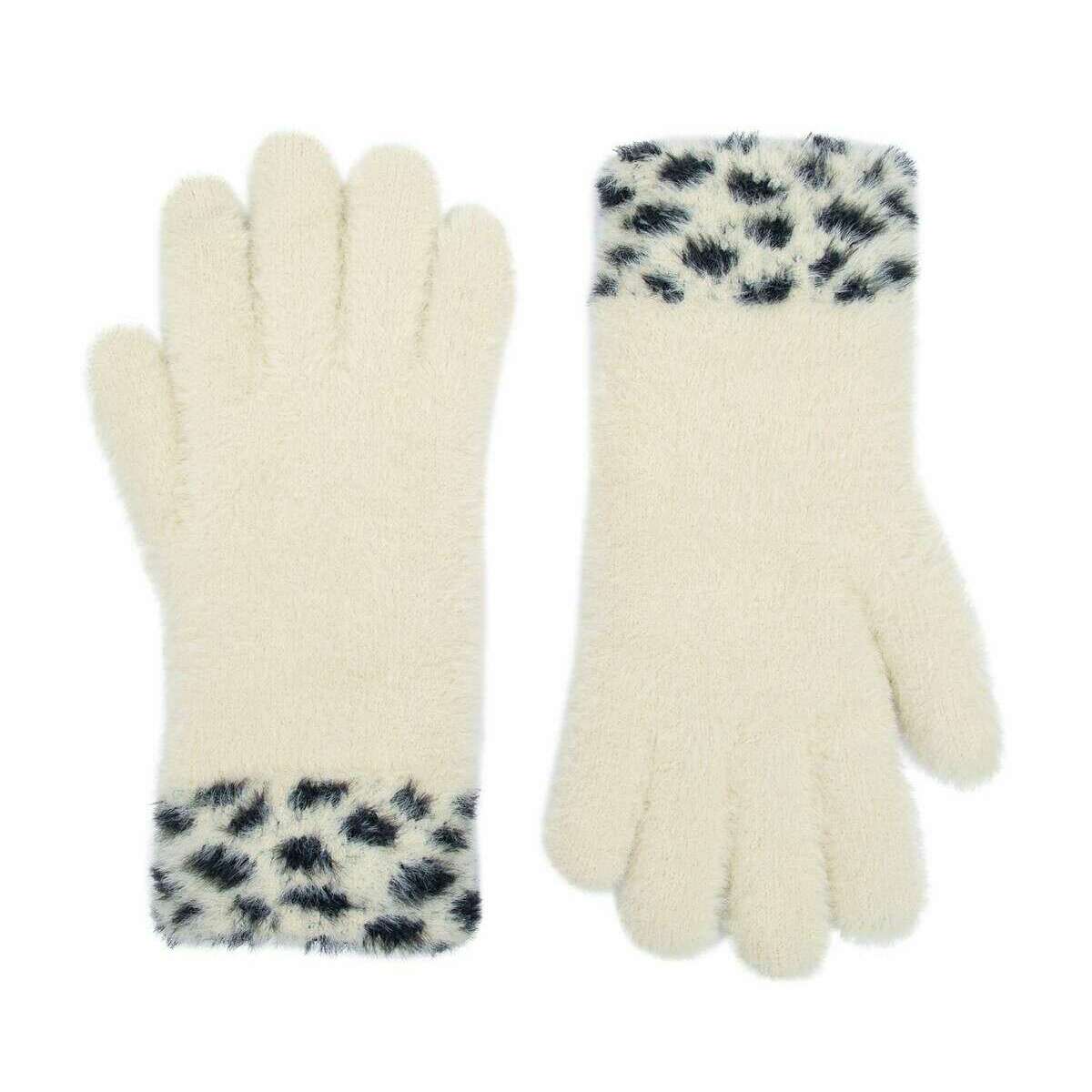 Bucklor fläckade fjädergarn stickade handskar - elfenben vitt