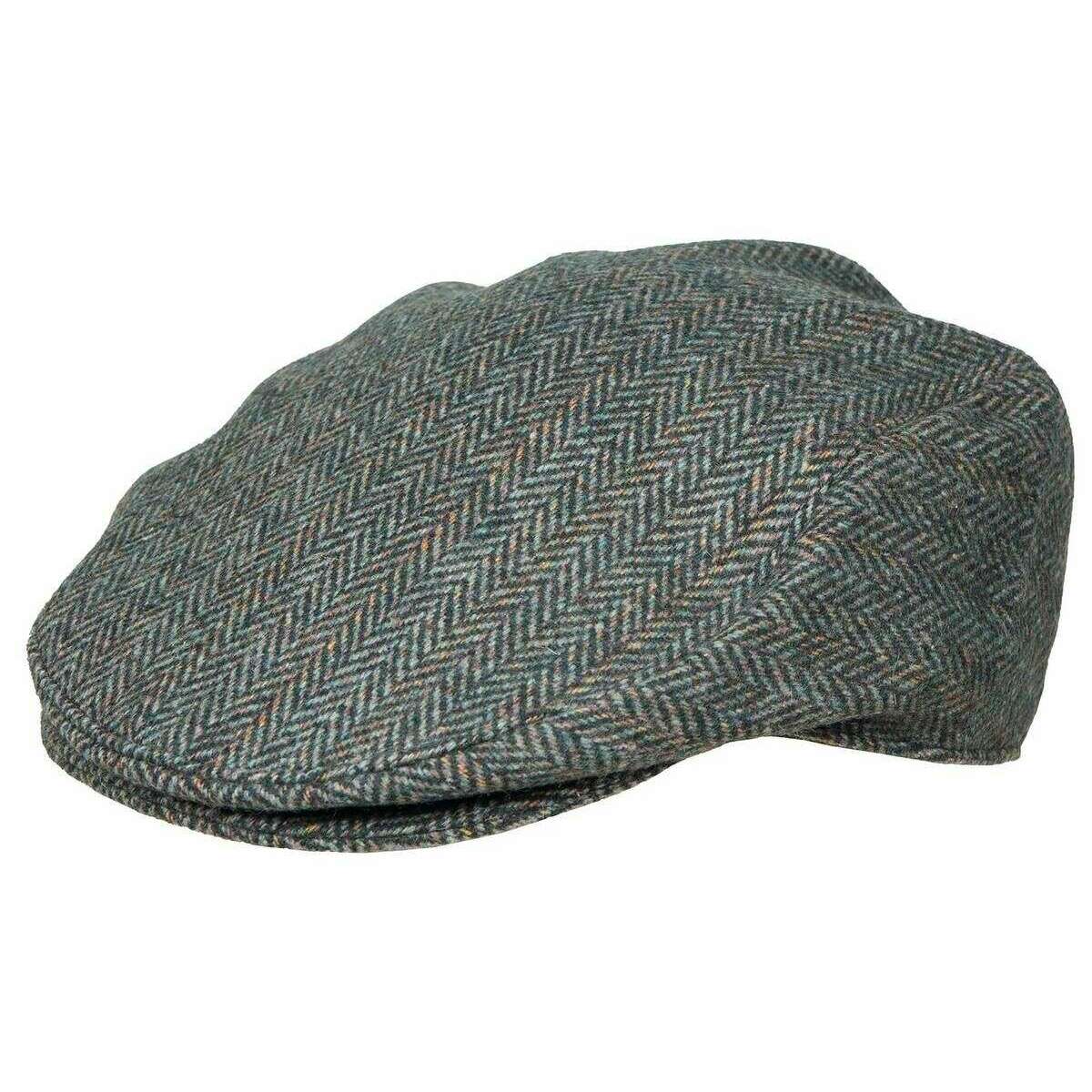 Dents Thirlmere Herringbone Tweed Flat Cap - Olivgrön