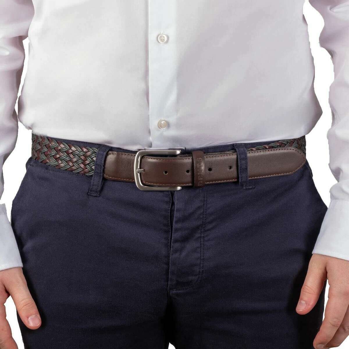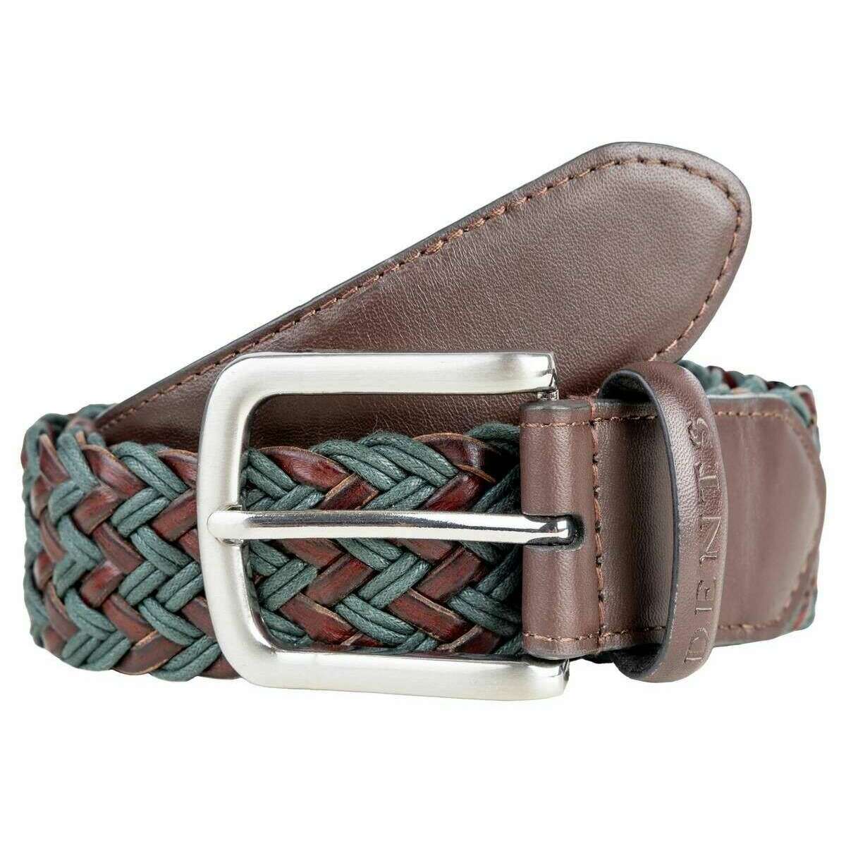 Detta välgjorda vävda läder- och bomullsbälte för män från Dents kommer i en grön färg och är tillverkat av 100% läder. Alla bälten levereras kompletta med bucklor. Dents Woven Leather and Cotton Belt - Green är ett perfekt val för dig som vill ge din garderob lite elegant stil. Dess flätade struktur ger den en fantastisk helhetslook som kommer att komplimentera din outfit perfekt vid både vardagliga och formella tillfällen. Detta bälte har en enkel läderhållare, satin nickelfärgade beslag och är ofodrad.