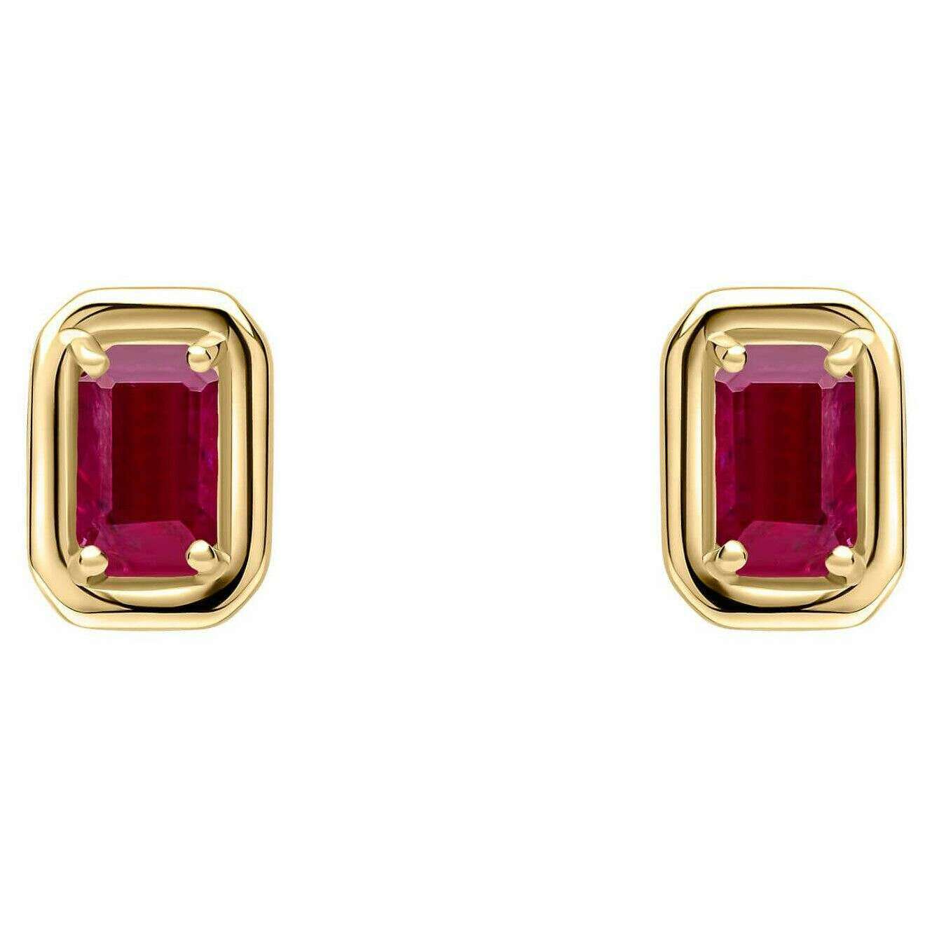 Elements Gold Chunky Border Ruby 9ct guld örhängen - guld/röd