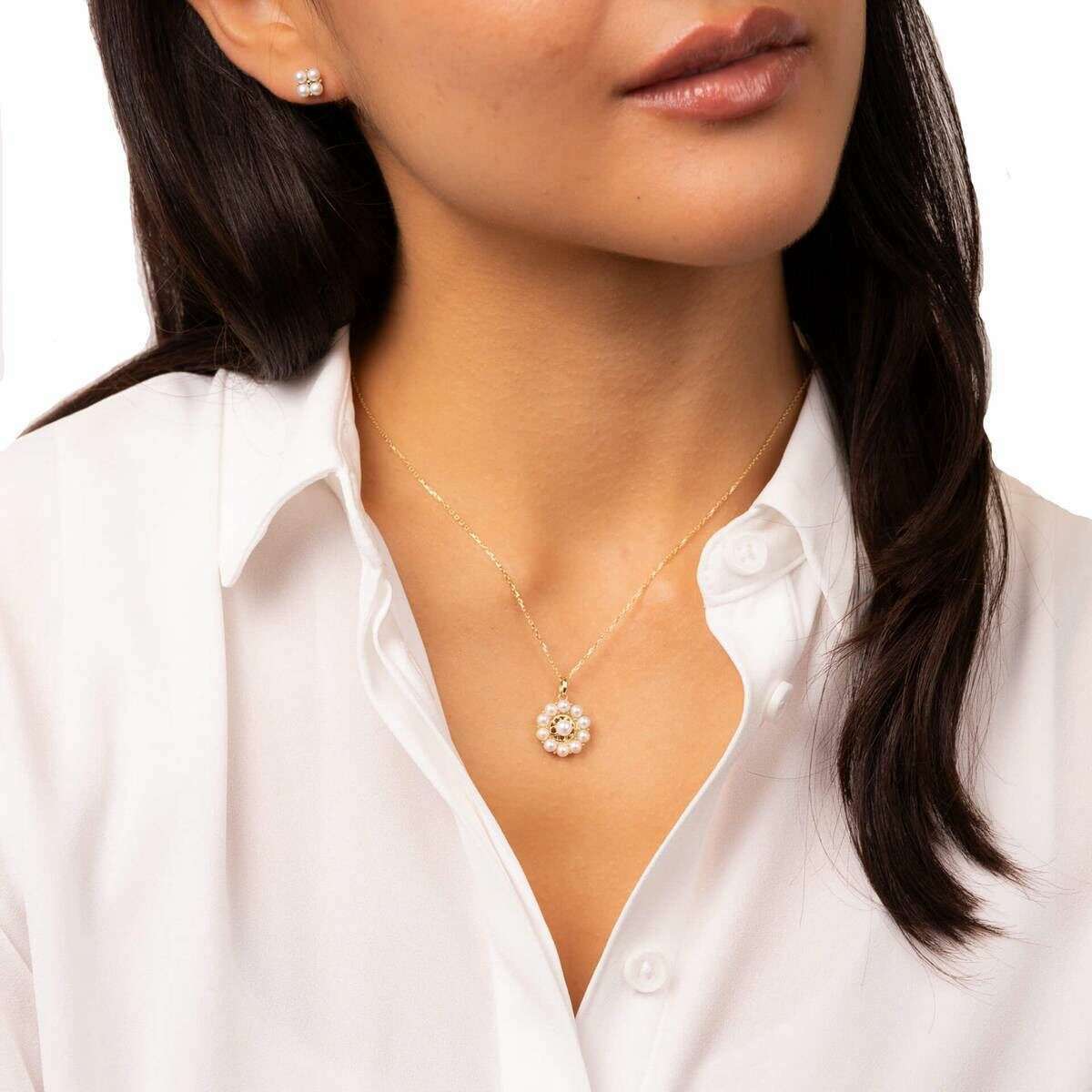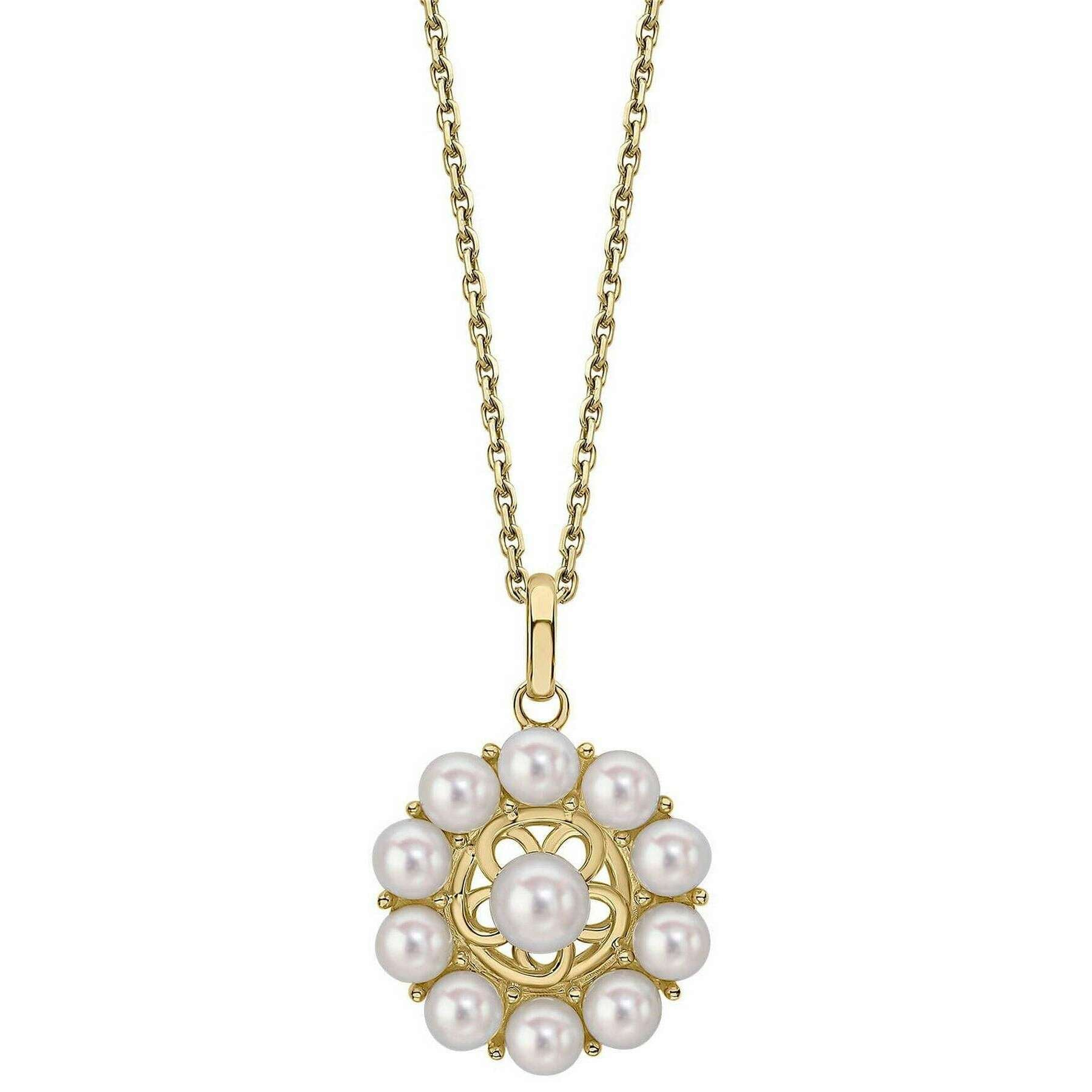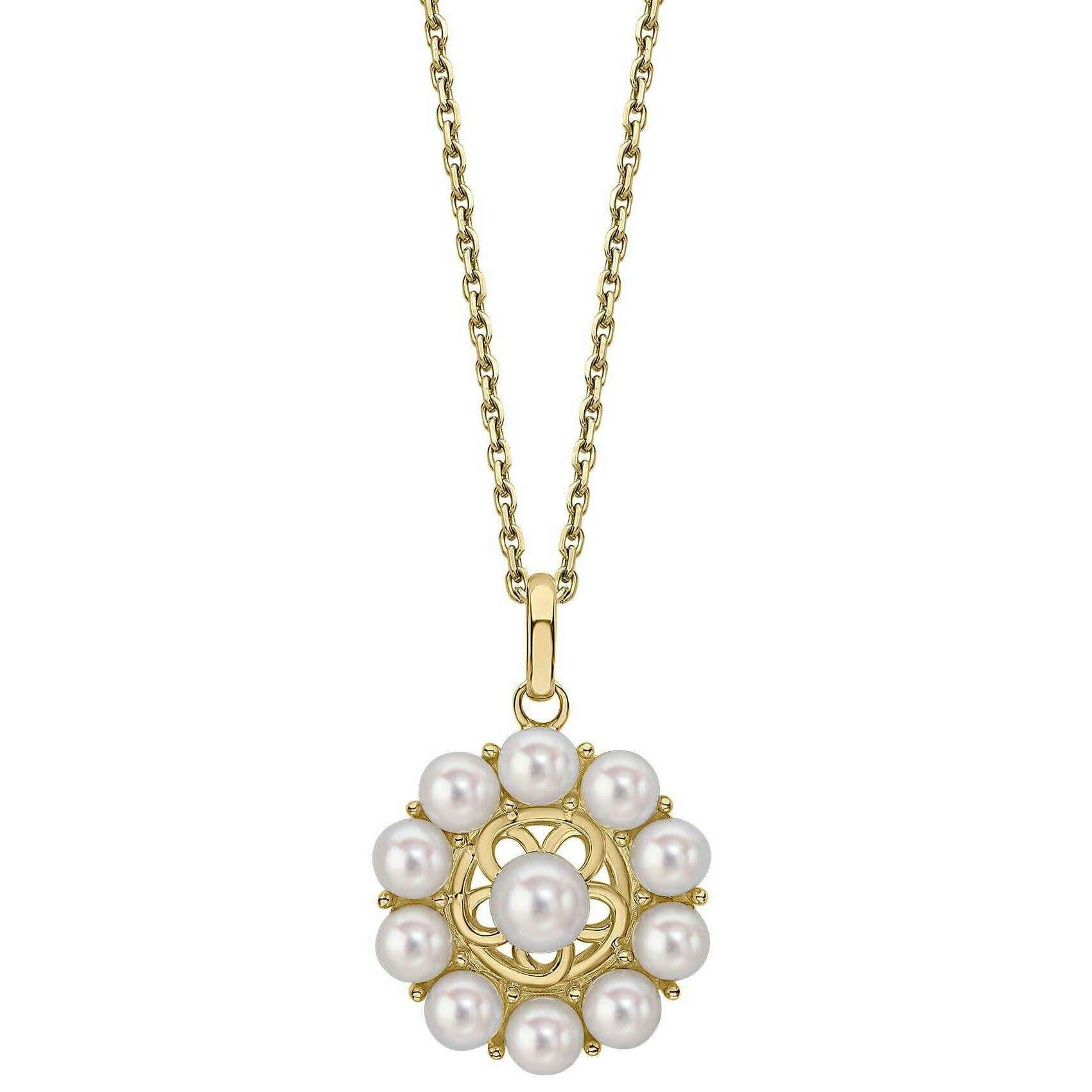 Elements guld blommig sötvattenspärla 9 ct guld hänge - guld/vit