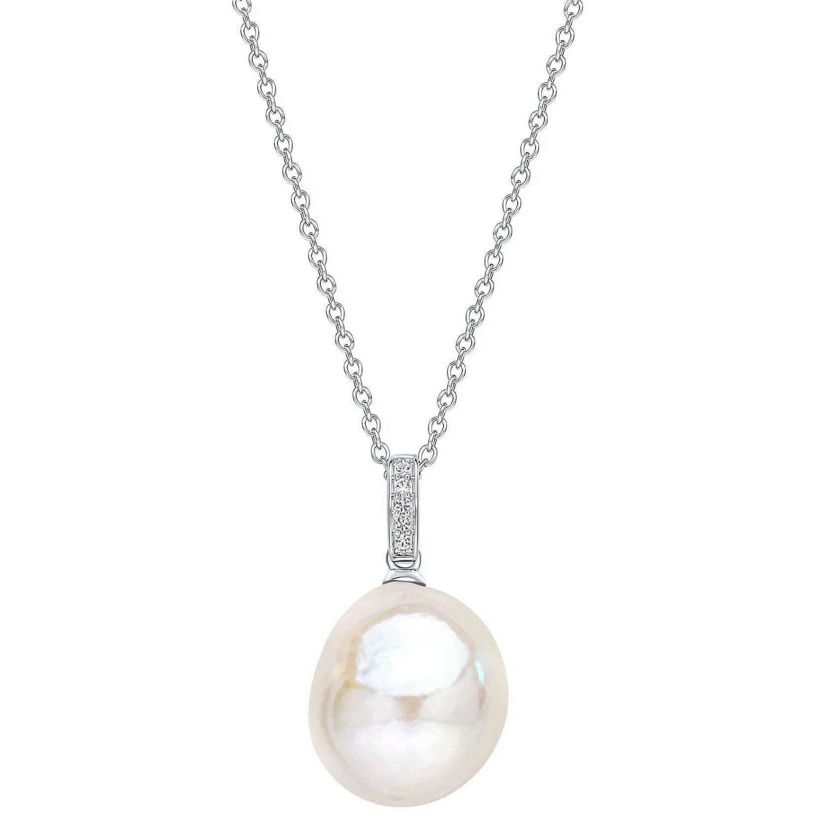 Elements guld överdimensionerad barock pärla och Topaz 9 karat guldhänge - silver/vit