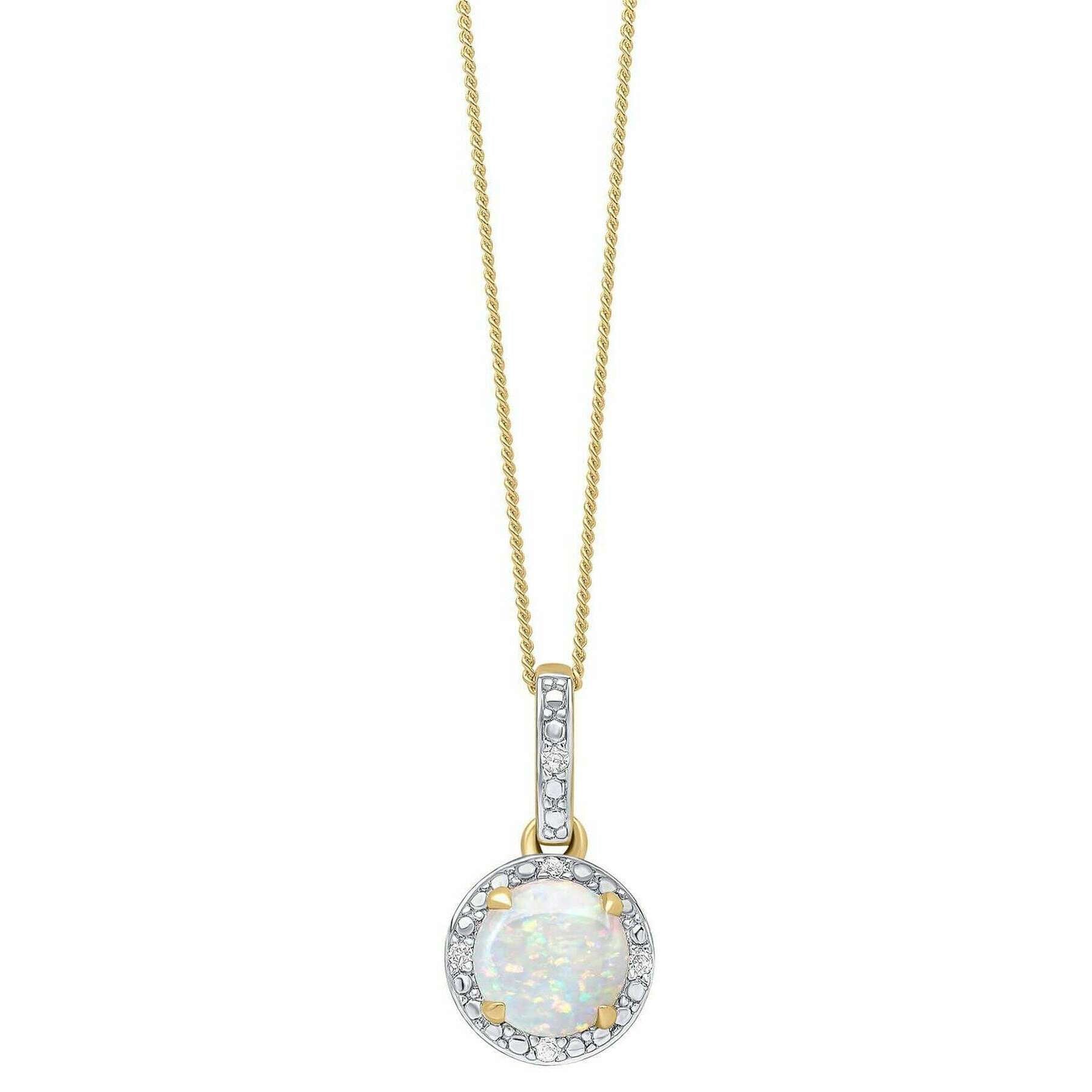 Elements Gold Round Diamond Surround Opal 9kt guldhänge - guld/silver
